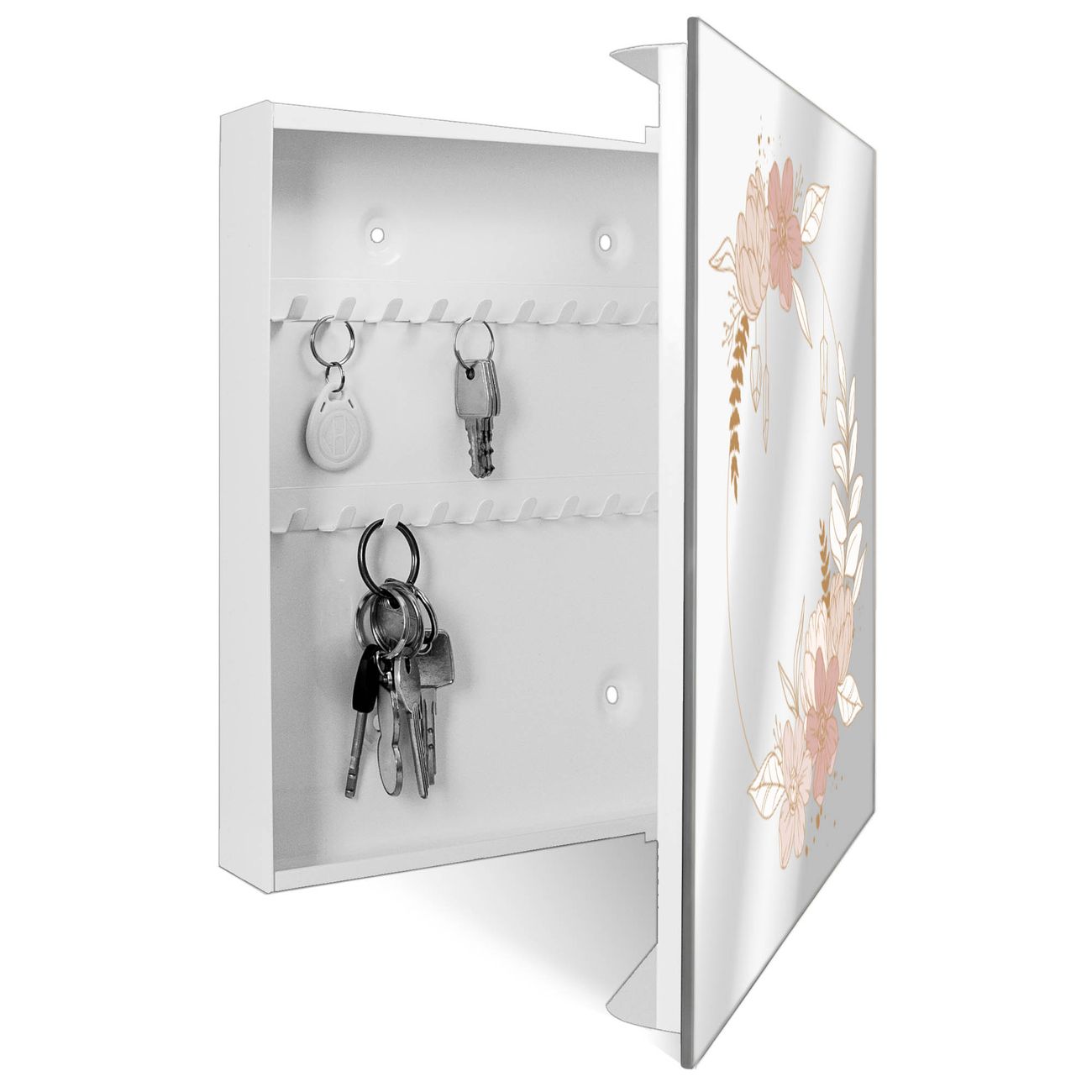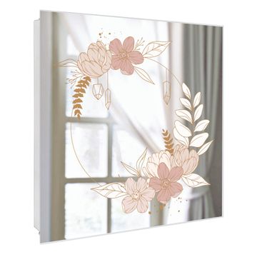 Spiegel Schlüsselkasten - Design Schlüsselbox Motiv Floraler Kranz