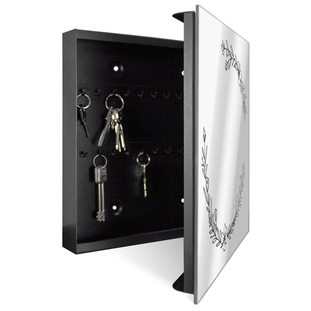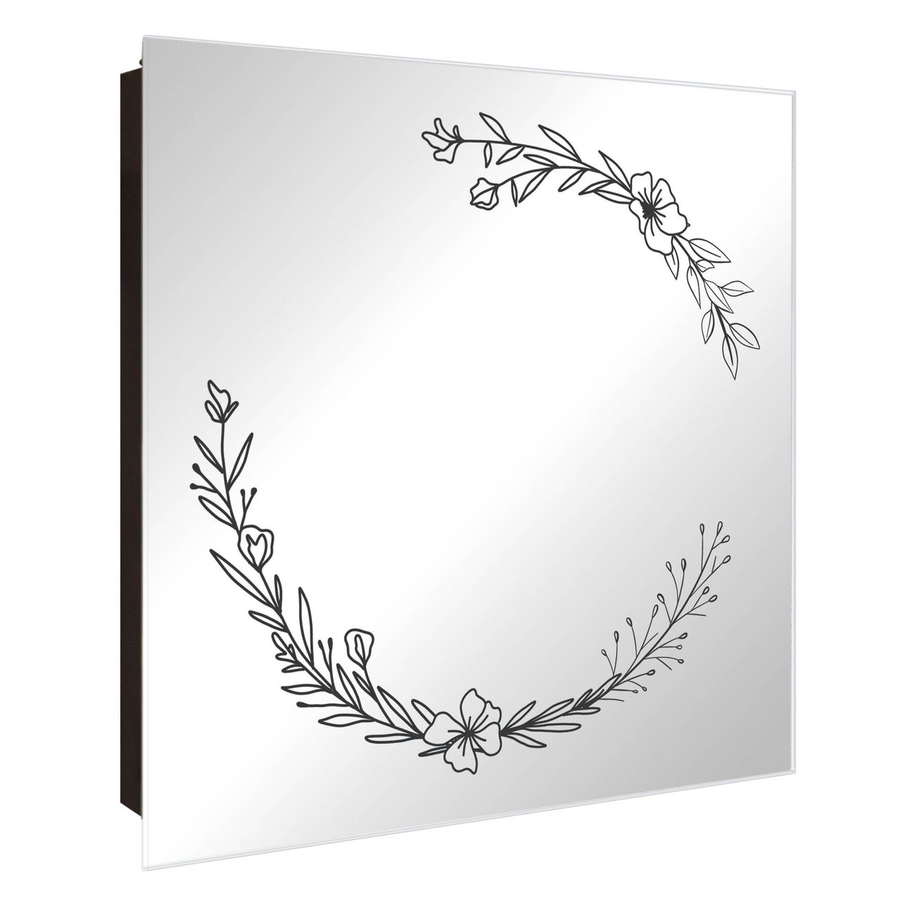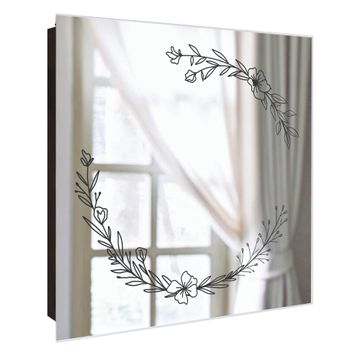 Spiegel Schlüsselkasten - Design Schlüsselbox Motiv Floraler Linienkranz