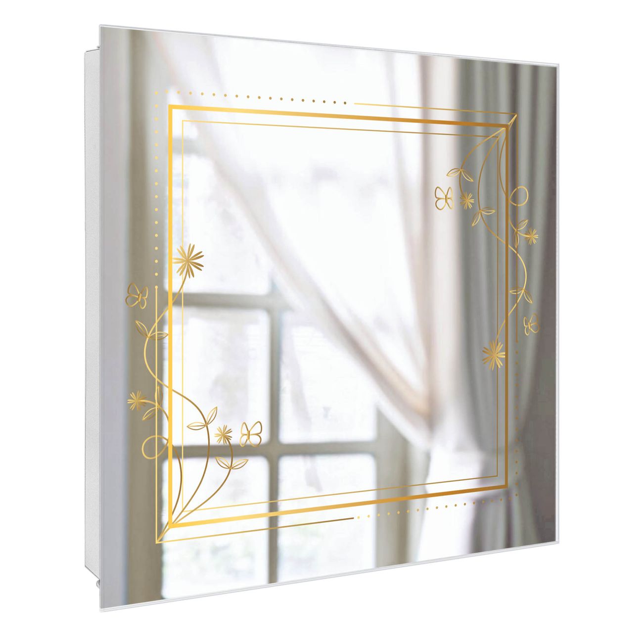 Spiegel Schlüsselkasten - Design Schlüsselbox Motiv Floraler Rahmen 2
