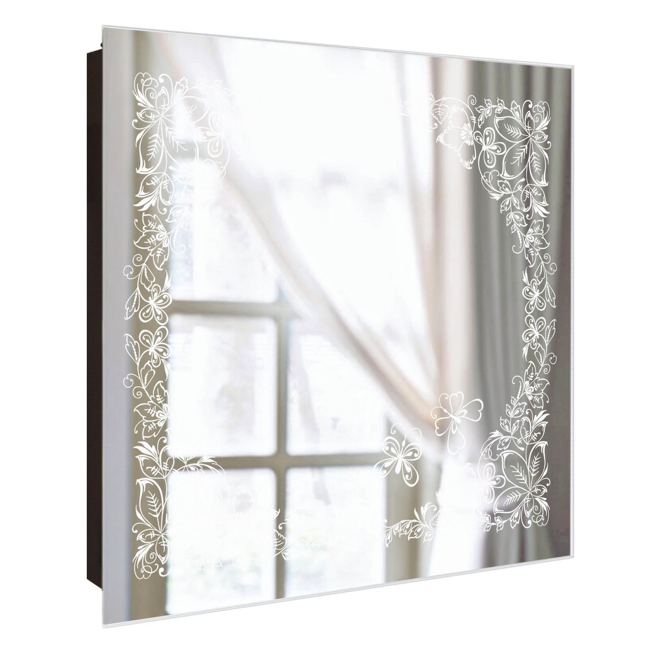 Spiegel Schlüsselkasten - Design Schlüsselbox Motiv Floraler Rahmen 3