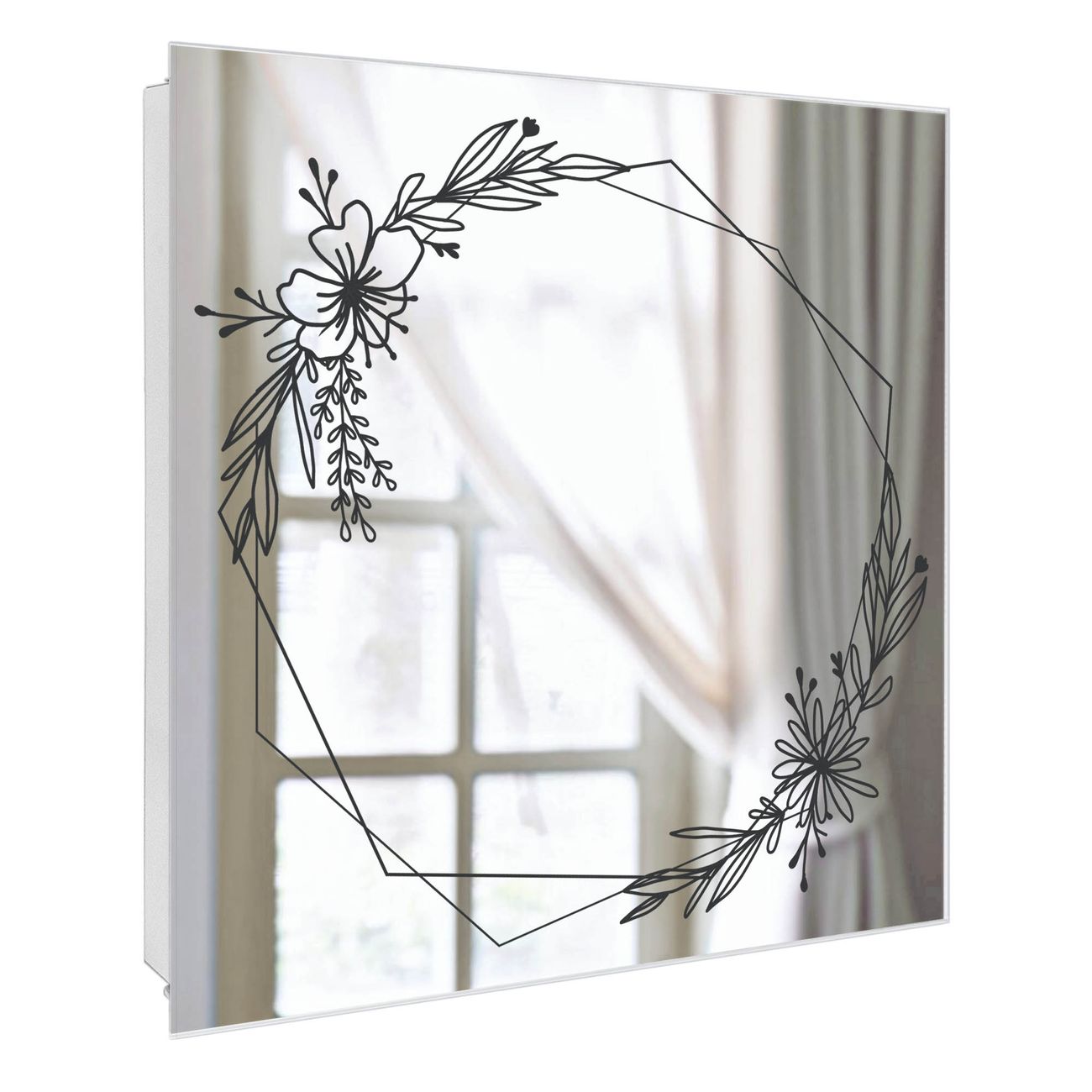 Spiegel Schlüsselkasten - Design Schlüsselbox Motiv Floraler Rahmen