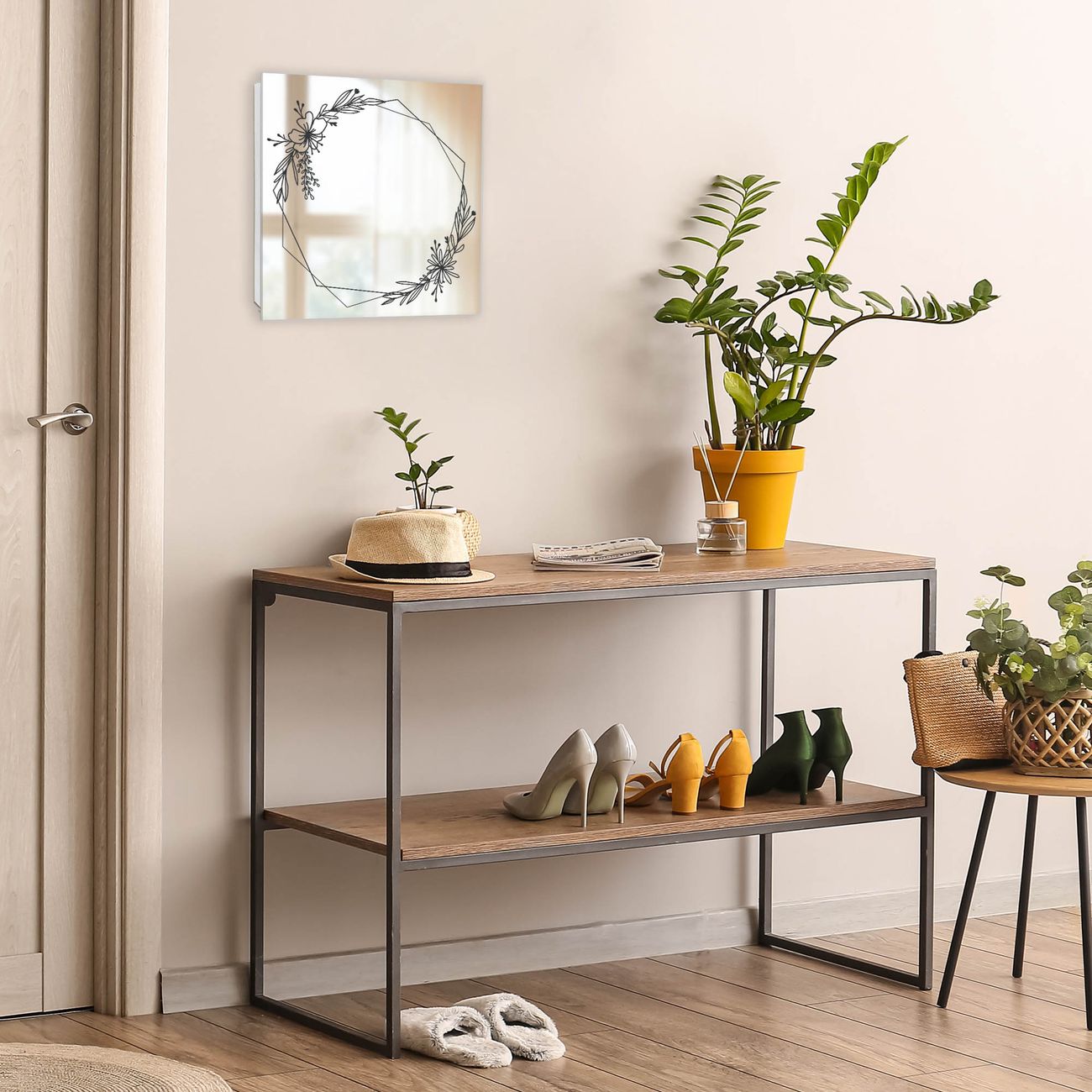 Bringe Ordnung und Stil in deinen Eingangsbereich mit dem banjado Schlüsselkasten mit Spiegel. Die elegante Spiegelfront kombiniert Funktionalität mit modernem Design und macht die Schlüsselaufbewahrung zu einem dekorativen Highlight. ✅ Spiegel Schlüsselaufbewahrung mit Motiv Motiv Floraler Rahmen Der Design-Schlüsselkasten Motiv Motiv Floraler Rahmen bietet Platz für bis zu 50 Schlüssel, die auf 5 stabilen Reihen mit je 10 Haken übersichtlich verstaut werden. Mit seinen kompakten Maßen von 30 x 30 x 5 cm passt die Schlüsselbox perfekt auch in kleinere Räume. Der weiß lackierte Stahlkorpus mit rechts angeschlagenem Türscharnier harmoniert mit der Spiegelfront und fügt sich nahtlos in jedes Wohnambiente ein. Ob als Schlüsselorganizer für Zuhause oder als praktische Lösung für Büros, Praxen und Gewerbe, der banjado Schlüsselkasten sorgt für Ordnung und Übersicht. Die Spiegelfront verleiht dem Eingangsbereich zusätzliche Funktionalität und lässt Räume optisch größer wirken. Die Schlüsselbox Motiv Motiv Floraler Rahmen zur Wandmontage wird inklusive Befestigungsmaterial geliefert und ist schnell angebracht. So hast du deine Schlüssel jederzeit griffbereit und zugleich stilvoll verstaut. Mit diesem banjado Schlüsselkasten Motiv Motiv Floraler Rahmen kombinierst du praktische Aufbewahrung mit stilvollem Wohndesign. Ob privat oder geschäftlich, die Schlüsselbox sorgt für mehr Ordnung, Übersicht und ein wohnliches Ambiente.Vorteile im Überblick