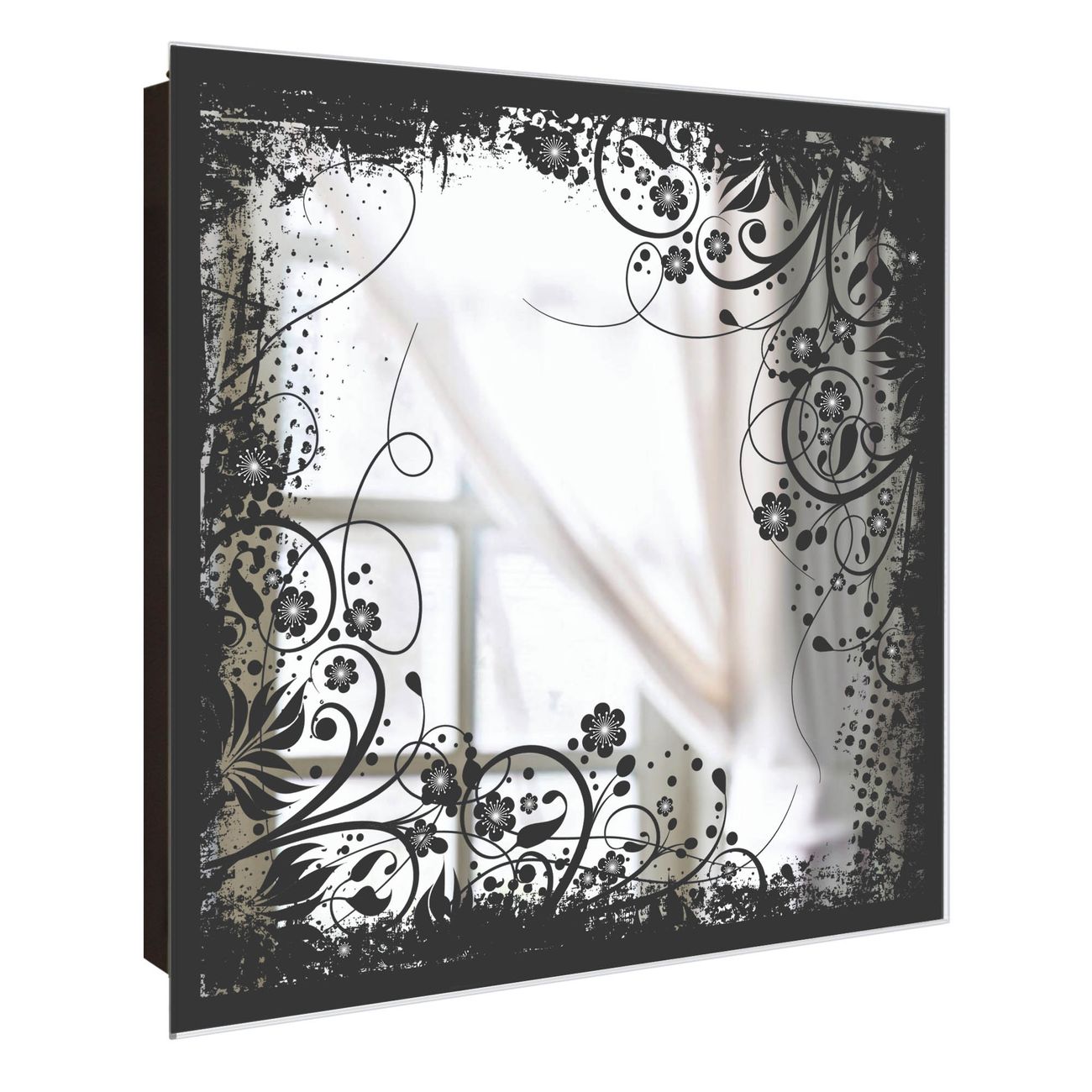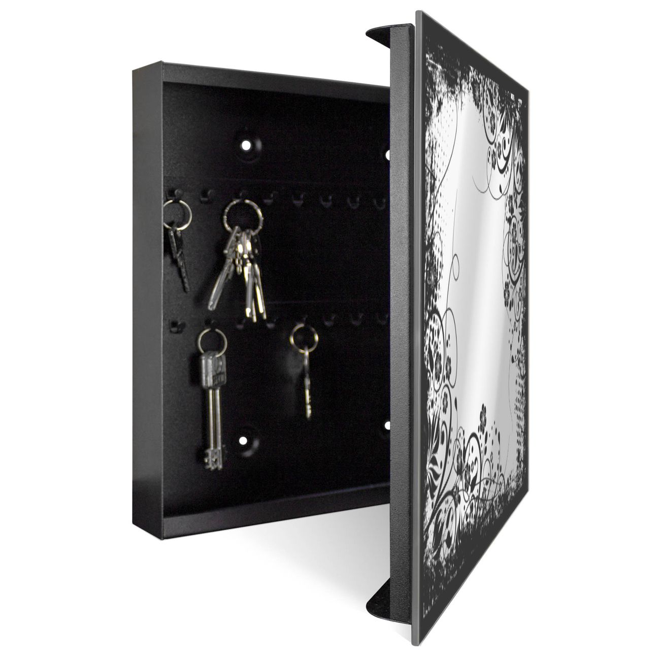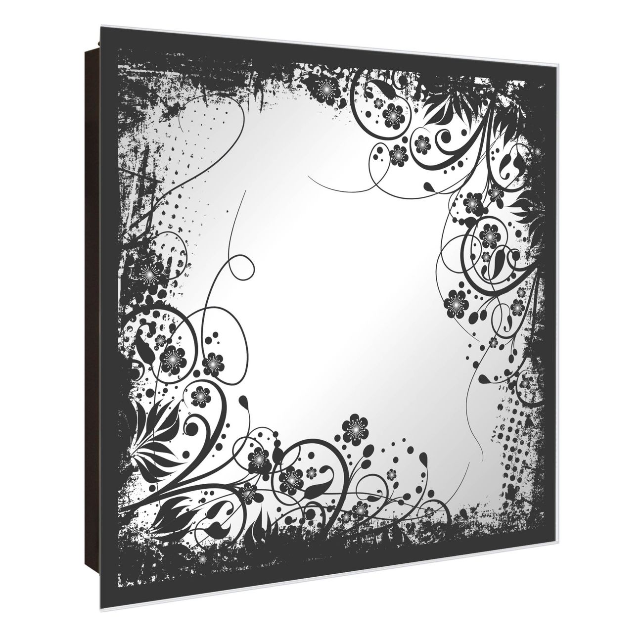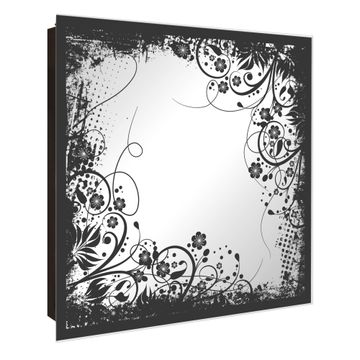 Spiegel Schlüsselkasten - Design Schlüsselbox Motiv Florales Schwarz-Weiß Muster