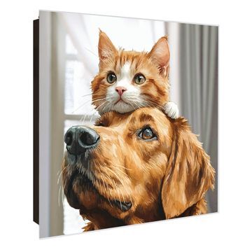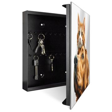 Bringe Ordnung und Stil in deinen Eingangsbereich mit dem banjado Schlüsselkasten mit Spiegel. Die elegante Spiegelfront kombiniert Funktionalität mit modernem Design und macht die Schlüsselaufbewahrung zu einem dekorativen Highlight. ✅ Spiegel Schlüsselaufbewahrung mit Motiv Motiv Freundschaft in Fell Der Design-Schlüsselkasten Motiv Motiv Freundschaft in Fell bietet Platz für bis zu 50 Schlüssel, die auf 5 stabilen Reihen mit je 10 Haken übersichtlich verstaut werden. Mit seinen kompakten Maßen von 30 x 30 x 5 cm passt die Schlüsselbox perfekt auch in kleinere Räume. Der schwarz lackierte Stahlkorpus mit rechts angeschlagenem Türscharnier harmoniert mit der Spiegelfront und fügt sich nahtlos in jedes Wohnambiente ein. Ob als Schlüsselorganizer für Zuhause oder als praktische Lösung für Büros, Praxen und Gewerbe, der banjado Schlüsselkasten sorgt für Ordnung und Übersicht. Die Spiegelfront verleiht dem Eingangsbereich zusätzliche Funktionalität und lässt Räume optisch größer wirken. Die Schlüsselbox Motiv Motiv Freundschaft in Fell zur Wandmontage wird inklusive Befestigungsmaterial geliefert und ist schnell angebracht. So hast du deine Schlüssel jederzeit griffbereit und zugleich stilvoll verstaut. Mit diesem banjado Schlüsselkasten Motiv Motiv Freundschaft in Fell kombinierst du praktische Aufbewahrung mit stilvollem Wohndesign. Ob privat oder geschäftlich, die Schlüsselbox sorgt für mehr Ordnung, Übersicht und ein wohnliches Ambiente.Vorteile im Überblick