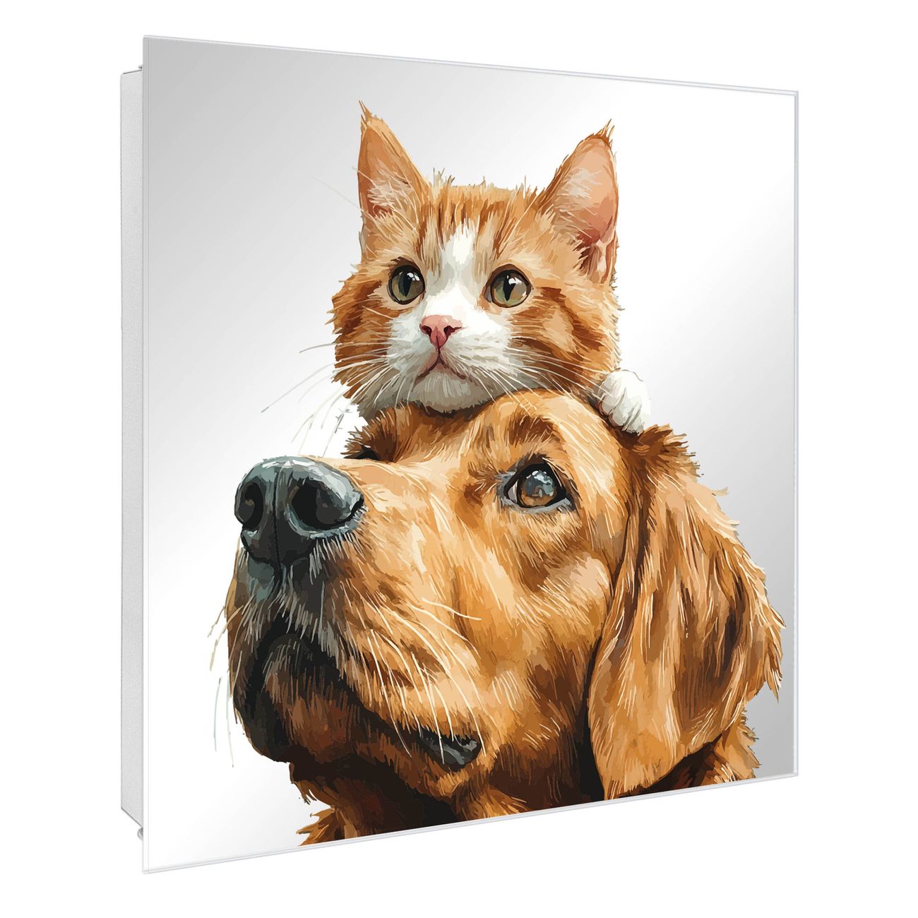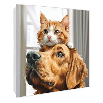 Bringe Ordnung und Stil in deinen Eingangsbereich mit dem banjado Schlüsselkasten mit Spiegel. Die elegante Spiegelfront kombiniert Funktionalität mit modernem Design und macht die Schlüsselaufbewahrung zu einem dekorativen Highlight. ✅ Spiegel Schlüsselaufbewahrung mit Motiv Motiv Freundschaft in Fell Der Design-Schlüsselkasten Motiv Motiv Freundschaft in Fell bietet Platz für bis zu 50 Schlüssel, die auf 5 stabilen Reihen mit je 10 Haken übersichtlich verstaut werden. Mit seinen kompakten Maßen von 30 x 30 x 5 cm passt die Schlüsselbox perfekt auch in kleinere Räume. Der weiß lackierte Stahlkorpus mit rechts angeschlagenem Türscharnier harmoniert mit der Spiegelfront und fügt sich nahtlos in jedes Wohnambiente ein. Ob als Schlüsselorganizer für Zuhause oder als praktische Lösung für Büros, Praxen und Gewerbe, der banjado Schlüsselkasten sorgt für Ordnung und Übersicht. Die Spiegelfront verleiht dem Eingangsbereich zusätzliche Funktionalität und lässt Räume optisch größer wirken. Die Schlüsselbox Motiv Motiv Freundschaft in Fell zur Wandmontage wird inklusive Befestigungsmaterial geliefert und ist schnell angebracht. So hast du deine Schlüssel jederzeit griffbereit und zugleich stilvoll verstaut. Mit diesem banjado Schlüsselkasten Motiv Motiv Freundschaft in Fell kombinierst du praktische Aufbewahrung mit stilvollem Wohndesign. Ob privat oder geschäftlich, die Schlüsselbox sorgt für mehr Ordnung, Übersicht und ein wohnliches Ambiente.Vorteile im Überblick