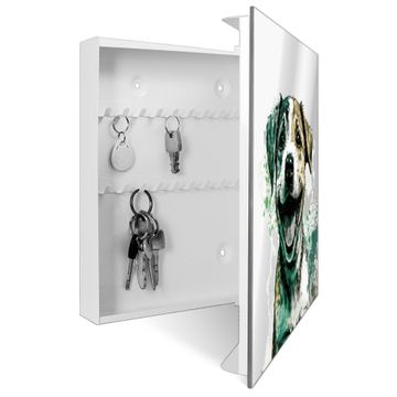 Spiegel Schlüsselkasten - Design Schlüsselbox Motiv Fröhlicher Welpe