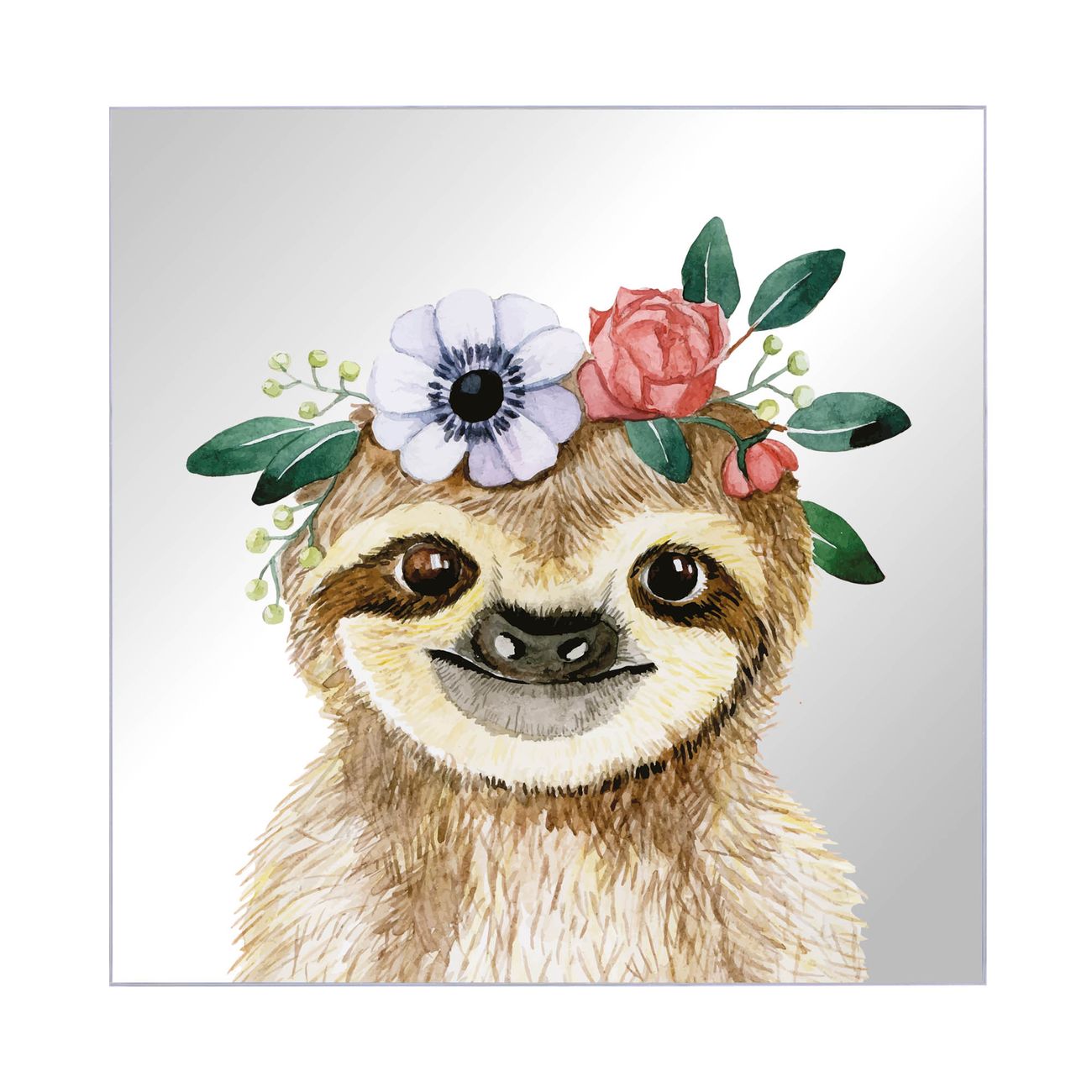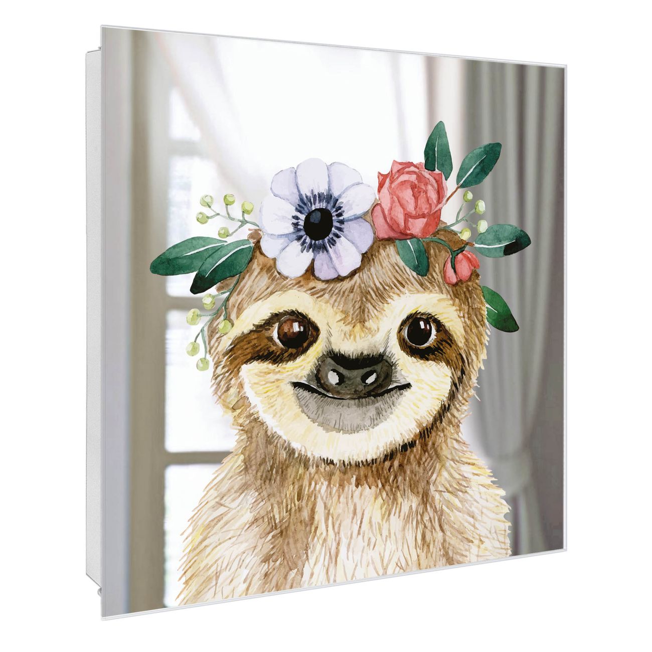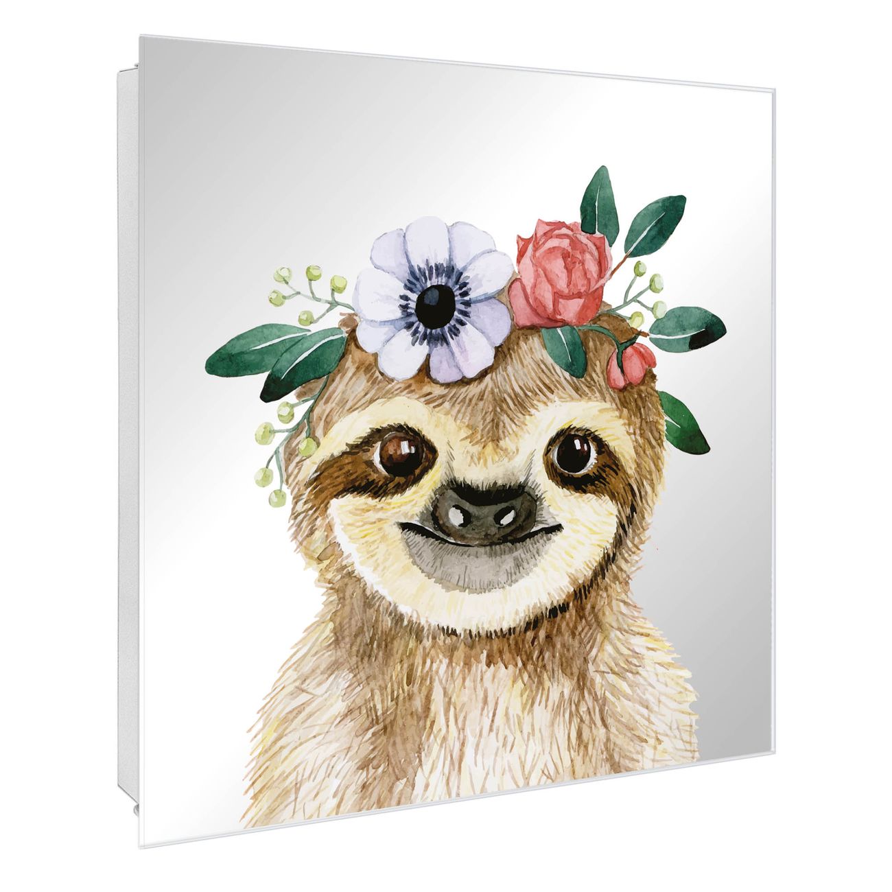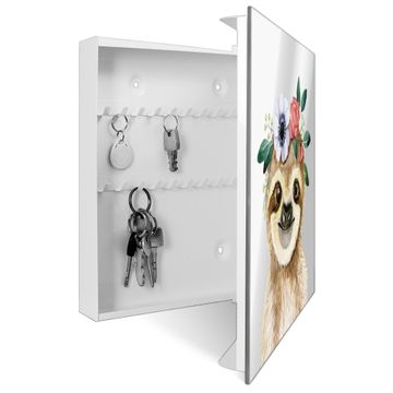Spiegel Schlüsselkasten - Design Schlüsselbox Motiv Fröhliches Faultier mit Blumenkranz