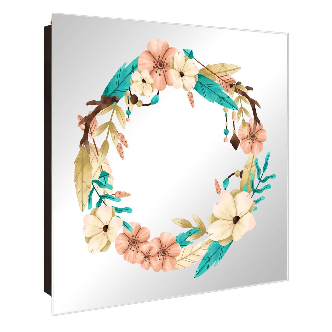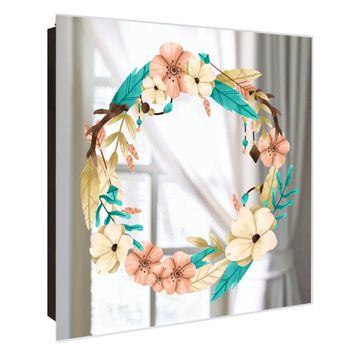 Spiegel Schlüsselkasten - Design Schlüsselbox Motiv Frühlingsblütenkranz