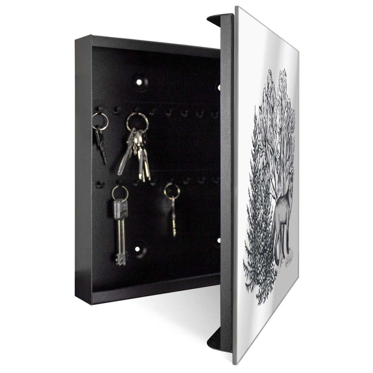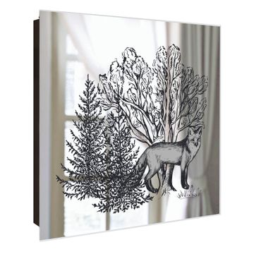 Spiegel Schlüsselkasten - Design Schlüsselbox Motiv Fuchs im Wald