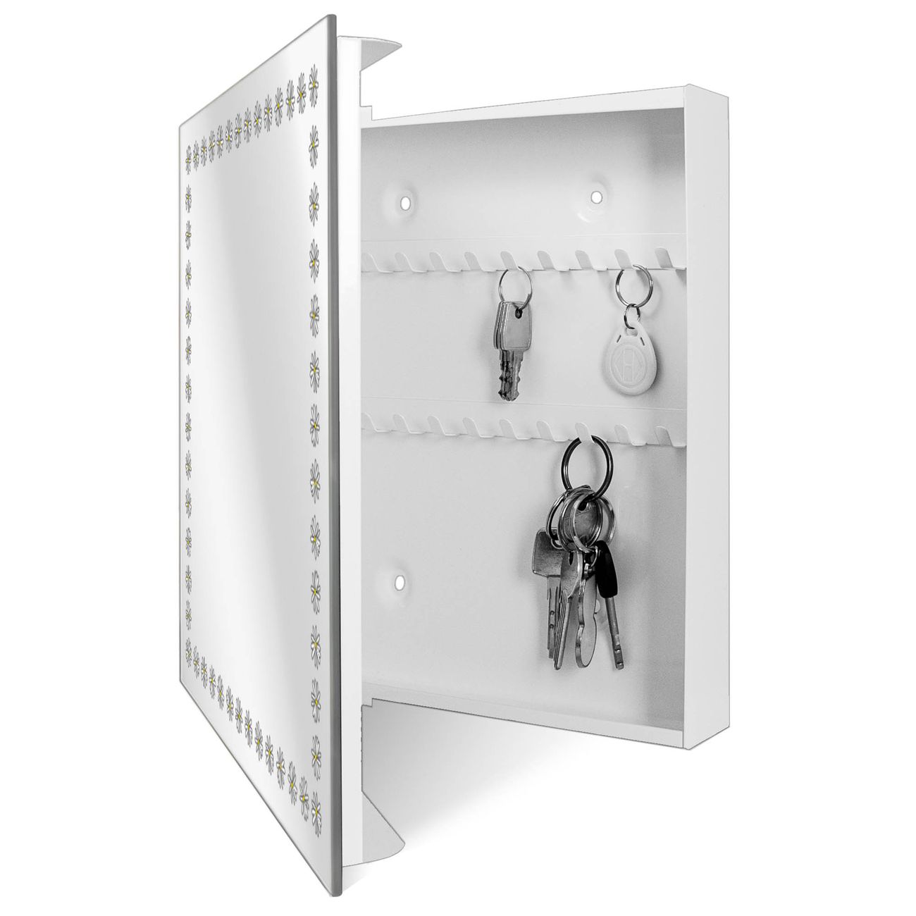 Spiegel Schlüsselkasten - Design Schlüsselbox Motiv Gänseblümchen-Rahmen