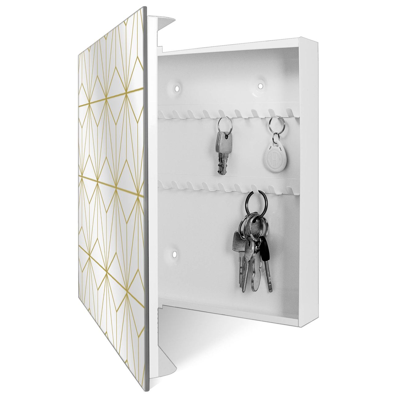 Spiegel Schlüsselkasten - Design Schlüsselbox Motiv Geometrische Eleganz