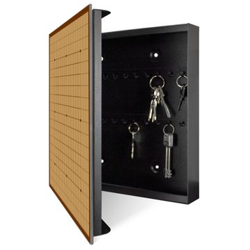 Bringe Ordnung und Stil in deinen Eingangsbereich mit dem banjado Schlüsselkasten mit Spiegel. Die elegante Spiegelfront kombiniert Funktionalität mit modernem Design und macht die Schlüsselaufbewahrung zu einem dekorativen Highlight. ✅ Spiegel Schlüsselaufbewahrung mit Motiv Motiv Go Brett Der Design-Schlüsselkasten Motiv Motiv Go Brett bietet Platz für bis zu 50 Schlüssel, die auf 5 stabilen Reihen mit je 10 Haken übersichtlich verstaut werden. Mit seinen kompakten Maßen von 30 x 30 x 5 cm passt die Schlüsselbox perfekt auch in kleinere Räume. Der schwarz lackierte Stahlkorpus mit rechts angeschlagenem Türscharnier harmoniert mit der Spiegelfront und fügt sich nahtlos in jedes Wohnambiente ein. Ob als Schlüsselorganizer für Zuhause oder als praktische Lösung für Büros, Praxen und Gewerbe, der banjado Schlüsselkasten sorgt für Ordnung und Übersicht. Die Spiegelfront verleiht dem Eingangsbereich zusätzliche Funktionalität und lässt Räume optisch größer wirken. Die Schlüsselbox Motiv Motiv Go Brett zur Wandmontage wird inklusive Befestigungsmaterial geliefert und ist schnell angebracht. So hast du deine Schlüssel jederzeit griffbereit und zugleich stilvoll verstaut. Mit diesem banjado Schlüsselkasten Motiv Motiv Go Brett kombinierst du praktische Aufbewahrung mit stilvollem Wohndesign. Ob privat oder geschäftlich, die Schlüsselbox sorgt für mehr Ordnung, Übersicht und ein wohnliches Ambiente.Vorteile im Überblick