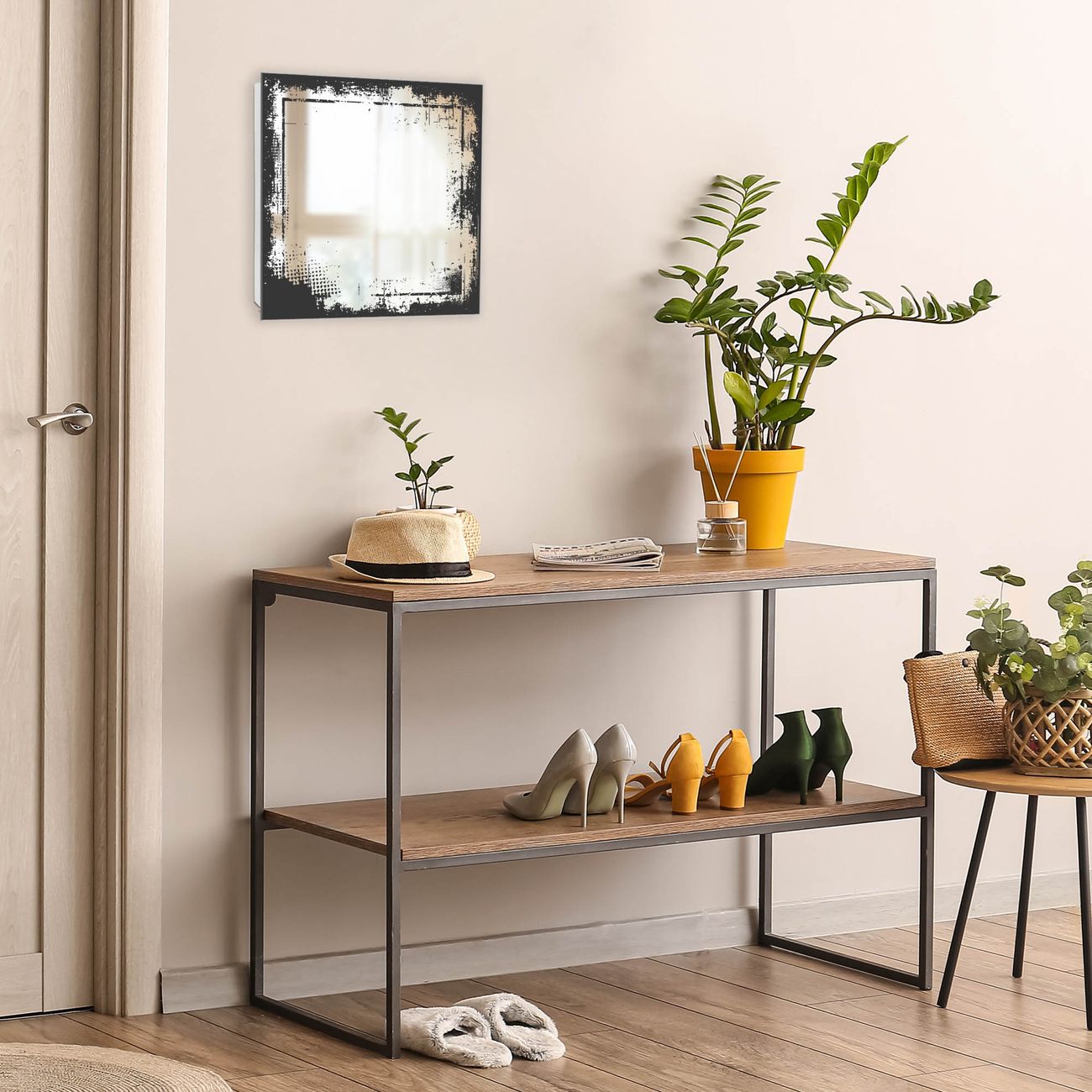 Bringe Ordnung und Stil in deinen Eingangsbereich mit dem banjado Schlüsselkasten mit Spiegel. Die elegante Spiegelfront kombiniert Funktionalität mit modernem Design und macht die Schlüsselaufbewahrung zu einem dekorativen Highlight. ✅ Spiegel Schlüsselaufbewahrung mit Motiv Motiv Grunge-Rahmen Der Design-Schlüsselkasten Motiv Motiv Grunge-Rahmen bietet Platz für bis zu 50 Schlüssel, die auf 5 stabilen Reihen mit je 10 Haken übersichtlich verstaut werden. Mit seinen kompakten Maßen von 30 x 30 x 5 cm passt die Schlüsselbox perfekt auch in kleinere Räume. Der weiß lackierte Stahlkorpus mit rechts angeschlagenem Türscharnier harmoniert mit der Spiegelfront und fügt sich nahtlos in jedes Wohnambiente ein. Ob als Schlüsselorganizer für Zuhause oder als praktische Lösung für Büros, Praxen und Gewerbe, der banjado Schlüsselkasten sorgt für Ordnung und Übersicht. Die Spiegelfront verleiht dem Eingangsbereich zusätzliche Funktionalität und lässt Räume optisch größer wirken. Die Schlüsselbox Motiv Motiv Grunge-Rahmen zur Wandmontage wird inklusive Befestigungsmaterial geliefert und ist schnell angebracht. So hast du deine Schlüssel jederzeit griffbereit und zugleich stilvoll verstaut. Mit diesem banjado Schlüsselkasten Motiv Motiv Grunge-Rahmen kombinierst du praktische Aufbewahrung mit stilvollem Wohndesign. Ob privat oder geschäftlich, die Schlüsselbox sorgt für mehr Ordnung, Übersicht und ein wohnliches Ambiente.Vorteile im Überblick