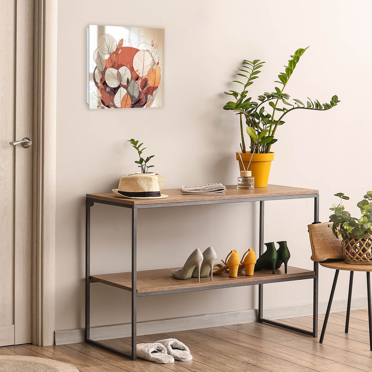 Bringe Ordnung und Stil in deinen Eingangsbereich mit dem banjado Schlüsselkasten mit Spiegel. Die elegante Spiegelfront kombiniert Funktionalität mit modernem Design und macht die Schlüsselaufbewahrung zu einem dekorativen Highlight. ✅ Spiegel Schlüsselaufbewahrung mit Motiv Motiv Herbstliche Blätterpracht Der Design-Schlüsselkasten Motiv Motiv Herbstliche Blätterpracht bietet Platz für bis zu 50 Schlüssel, die auf 5 stabilen Reihen mit je 10 Haken übersichtlich verstaut werden. Mit seinen kompakten Maßen von 30 x 30 x 5 cm passt die Schlüsselbox perfekt auch in kleinere Räume. Der weiß lackierte Stahlkorpus mit rechts angeschlagenem Türscharnier harmoniert mit der Spiegelfront und fügt sich nahtlos in jedes Wohnambiente ein. Ob als Schlüsselorganizer für Zuhause oder als praktische Lösung für Büros, Praxen und Gewerbe, der banjado Schlüsselkasten sorgt für Ordnung und Übersicht. Die Spiegelfront verleiht dem Eingangsbereich zusätzliche Funktionalität und lässt Räume optisch größer wirken. Die Schlüsselbox Motiv Motiv Herbstliche Blätterpracht zur Wandmontage wird inklusive Befestigungsmaterial geliefert und ist schnell angebracht. So hast du deine Schlüssel jederzeit griffbereit und zugleich stilvoll verstaut. Mit diesem banjado Schlüsselkasten Motiv Motiv Herbstliche Blätterpracht kombinierst du praktische Aufbewahrung mit stilvollem Wohndesign. Ob privat oder geschäftlich, die Schlüsselbox sorgt für mehr Ordnung, Übersicht und ein wohnliches Ambiente.Vorteile im Überblick