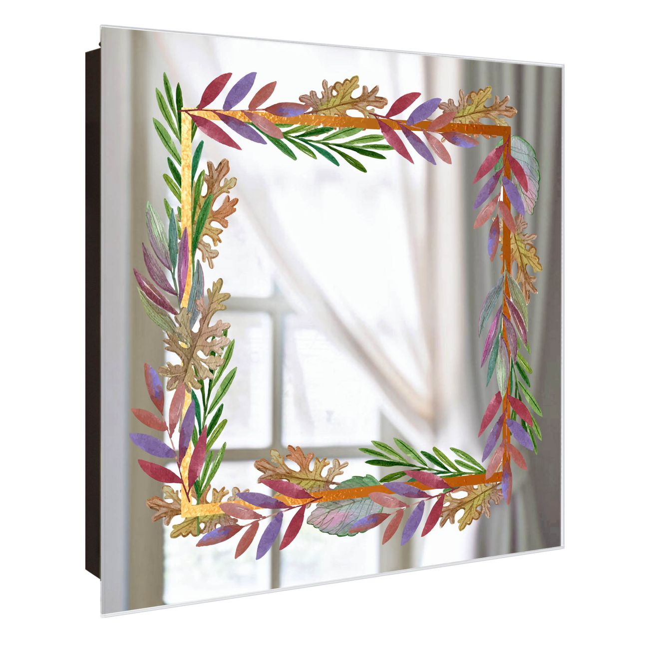 Spiegel Schlüsselkasten - Design Schlüsselbox Motiv Herbstliche Blattgirlande