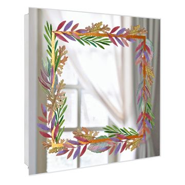 Spiegel Schlüsselkasten - Design Schlüsselbox Motiv Herbstliche Blattgirlande
