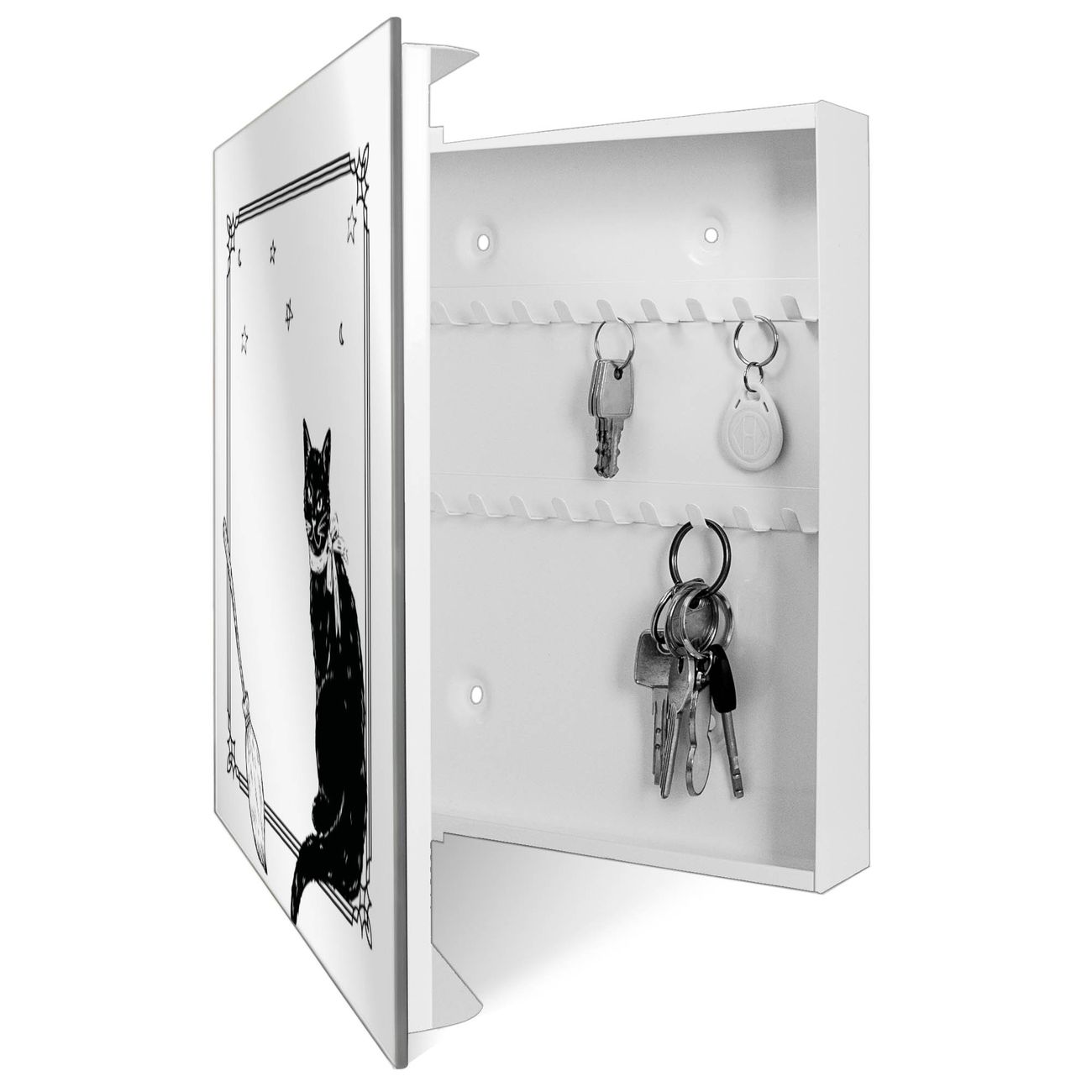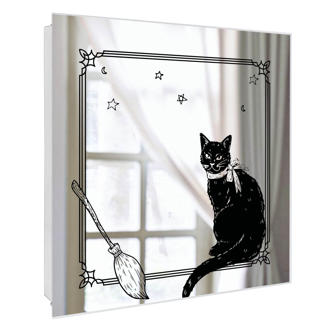 Spiegel Schlüsselkasten - Design Schlüsselbox Motiv Hexenkater