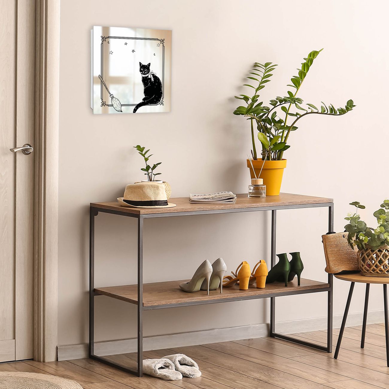 Bringe Ordnung und Stil in deinen Eingangsbereich mit dem banjado Schlüsselkasten mit Spiegel. Die elegante Spiegelfront kombiniert Funktionalität mit modernem Design und macht die Schlüsselaufbewahrung zu einem dekorativen Highlight. ✅ Spiegel Schlüsselaufbewahrung mit Motiv Motiv Hexenkater Der Design-Schlüsselkasten Motiv Motiv Hexenkater bietet Platz für bis zu 50 Schlüssel, die auf 5 stabilen Reihen mit je 10 Haken übersichtlich verstaut werden. Mit seinen kompakten Maßen von 30 x 30 x 5 cm passt die Schlüsselbox perfekt auch in kleinere Räume. Der weiß lackierte Stahlkorpus mit rechts angeschlagenem Türscharnier harmoniert mit der Spiegelfront und fügt sich nahtlos in jedes Wohnambiente ein. Ob als Schlüsselorganizer für Zuhause oder als praktische Lösung für Büros, Praxen und Gewerbe, der banjado Schlüsselkasten sorgt für Ordnung und Übersicht. Die Spiegelfront verleiht dem Eingangsbereich zusätzliche Funktionalität und lässt Räume optisch größer wirken. Die Schlüsselbox Motiv Motiv Hexenkater zur Wandmontage wird inklusive Befestigungsmaterial geliefert und ist schnell angebracht. So hast du deine Schlüssel jederzeit griffbereit und zugleich stilvoll verstaut. Mit diesem banjado Schlüsselkasten Motiv Motiv Hexenkater kombinierst du praktische Aufbewahrung mit stilvollem Wohndesign. Ob privat oder geschäftlich, die Schlüsselbox sorgt für mehr Ordnung, Übersicht und ein wohnliches Ambiente.Vorteile im Überblick