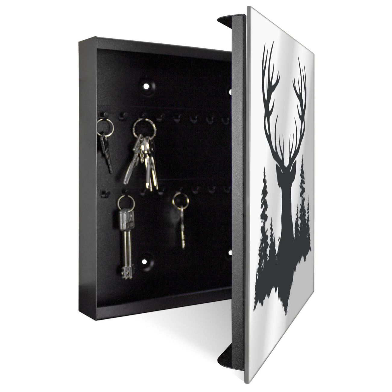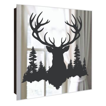 Spiegel Schlüsselkasten - Design Schlüsselbox Motiv Hirsch im Wald