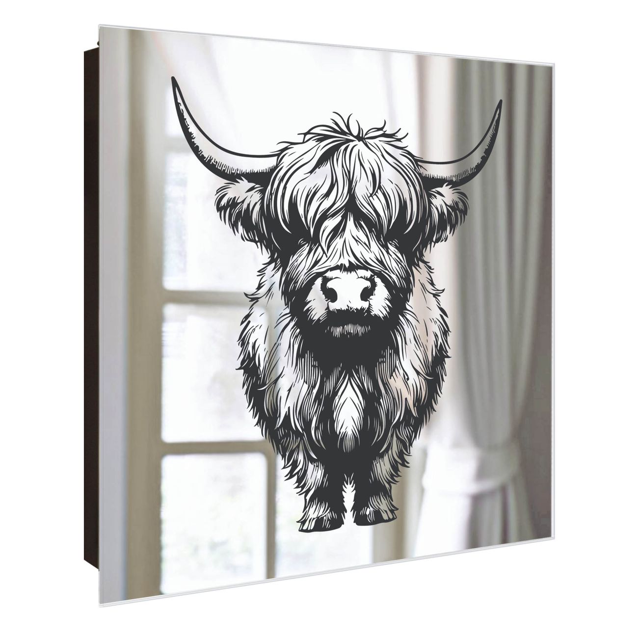Spiegel Schlüsselkasten - Design Schlüsselbox Motiv Hochlandrind