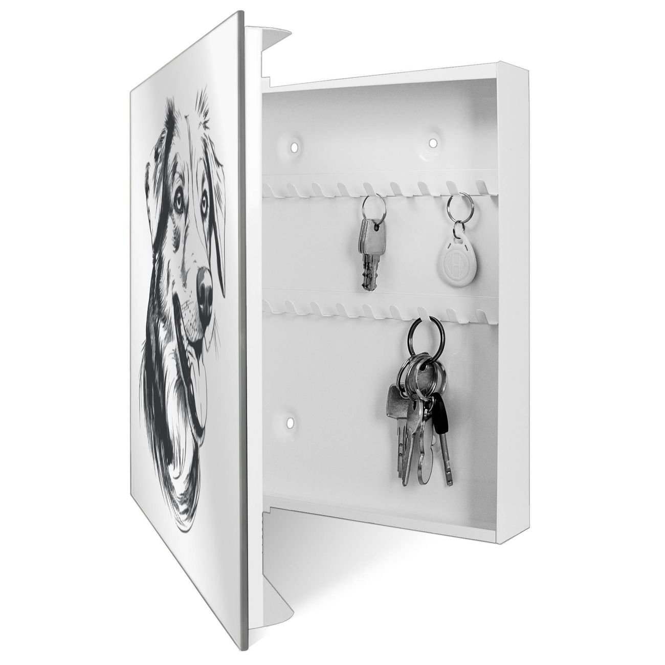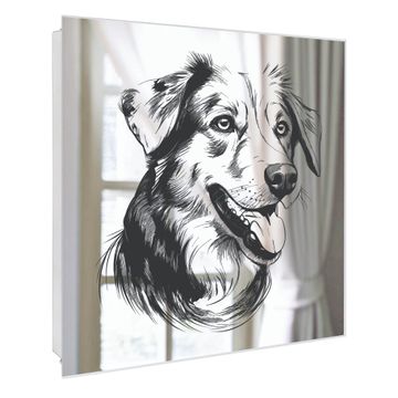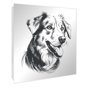 Spiegel Schlüsselkasten - Design Schlüsselbox Motiv Hundeillustration
