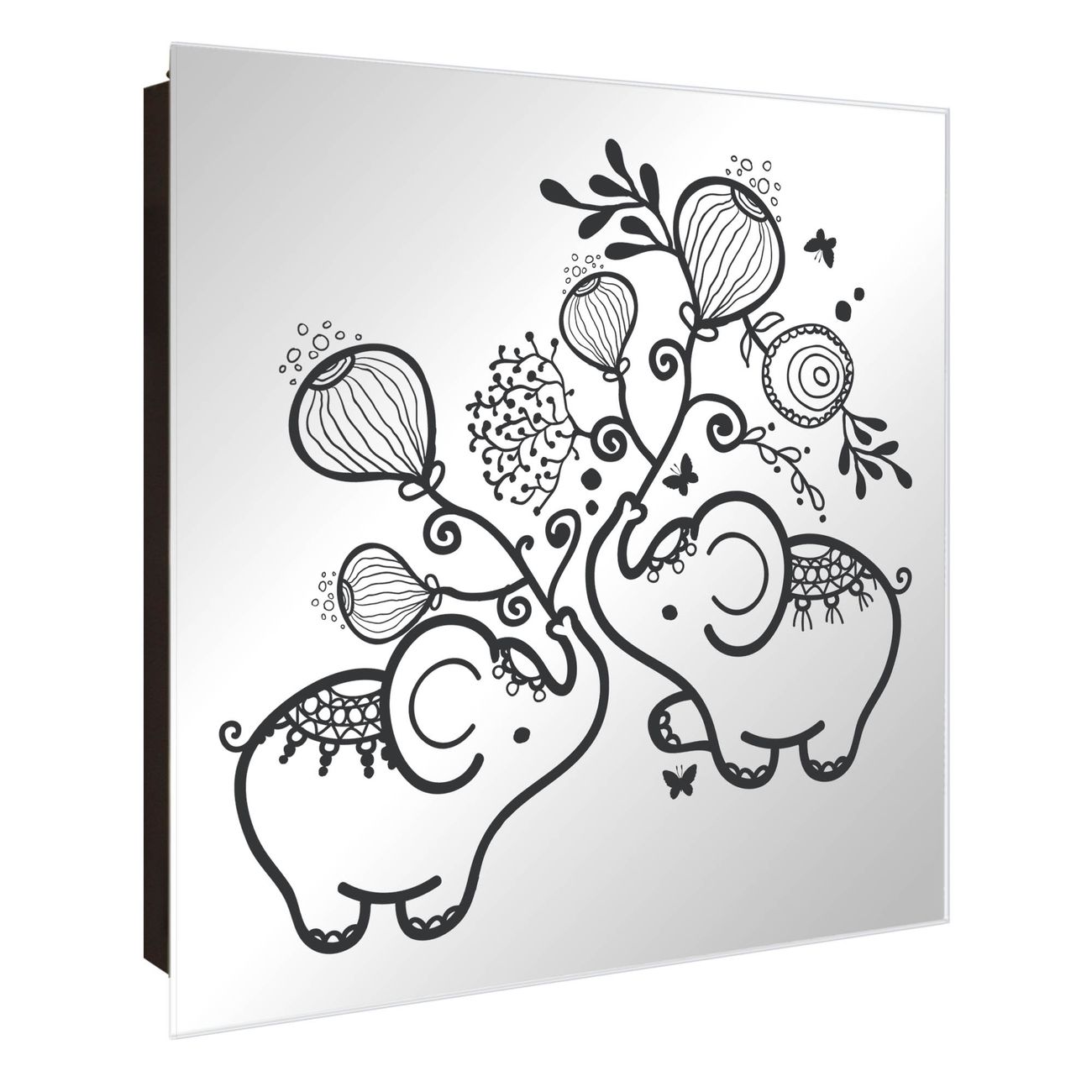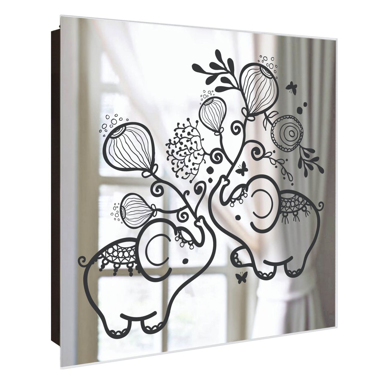 Schlüsselkasten mit Spiegelfront - Design Schlüsselbox Motiv Indische Elefanten