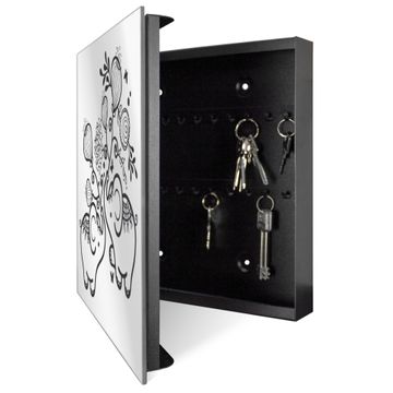 banjado Schlüsselkasten mit Spiegelfront - moderne Schlüsselbox für bis zu 50 Schlüssel Bringe Ordnung und Stil in deinen Eingangsbereich mit dem banjado Schlüsselkasten mit Spiegel. Die elegante Spiegelfront kombiniert Funktionalität mit modernem Design und macht die Schlüsselaufbewahrung zu einem dekorativen Highlight. Der Design-Schlüsselkasten bietet Platz für bis zu 50 Schlüssel, die an 5 stabilen Reihen mit je 10 Haken übersichtlich und sicher verstaut werden. Mit seinem kompakten Maß von 30×30cm passt er perfekt in Flur, Büro, Ferienwohnung oder Praxis. Der weiß oder schwarz lackierte Korpus harmoniert ideal mit der bedruckten Spiegelfront und fügt sich nahtlos in jedes Wohnambiente ein. Die Schlüsselbox zur Wandmontage ist schnell und unkompliziert anzubringen. Sie eignet sich nicht nur als Schlüsselorganizer für zu Hause, sondern auch für gewerblich genutzte Räume, in denen viele Schlüssel geordnet und leicht zugänglich aufbewahrt werden müssen. Vorteile im Überblick: Stilvolle Schlüsselaufbewahrung mit moderner Spiegelfront Platz für 50 Schlüssel - ideal für Haushalt, Büro oder Gewerbe Maße 30×30×5cm - kompakt und dennoch geräumig Wandmontage inklusive Befestigungsmaterial Robuste Verarbeitung mit hochwertigem Spiegelglas Mit diesem Schlüsselkasten mit Spiegelfront sorgst du für mehr Ordnung, Übersicht und ein modernes Wohnambiente.
