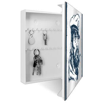 Spiegel Schlüsselkasten - Design Schlüsselbox Motiv Kapitän Portrait