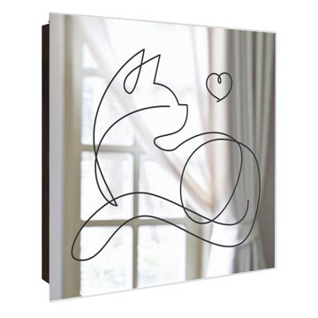 Spiegel Schlüsselkasten - Design Schlüsselbox Motiv Katze Lineart