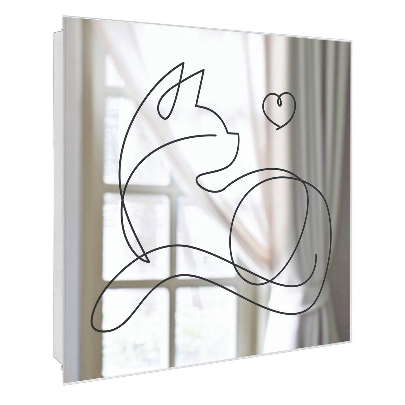 Spiegel Schlüsselkasten - Design Schlüsselbox Motiv Katze Lineart