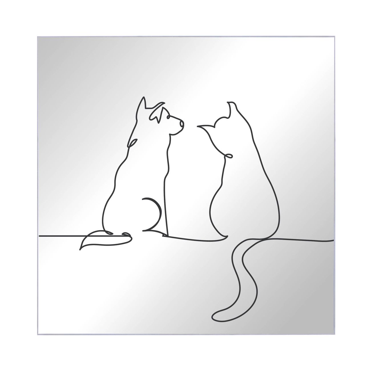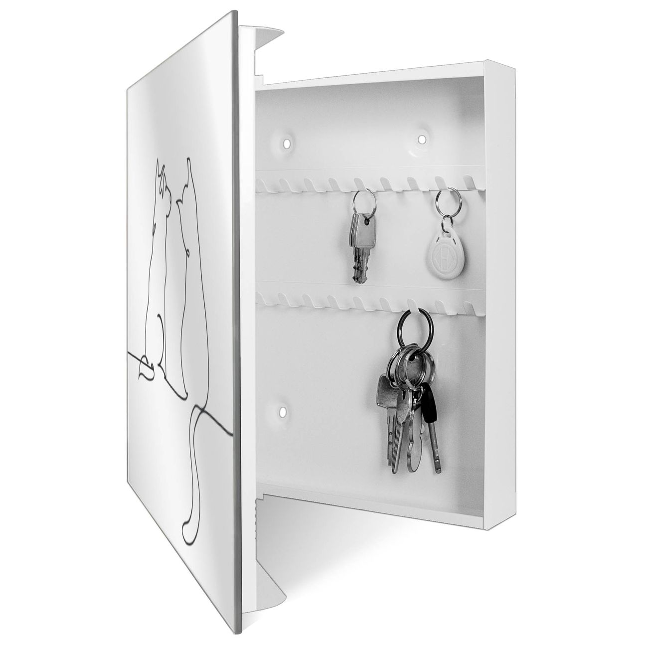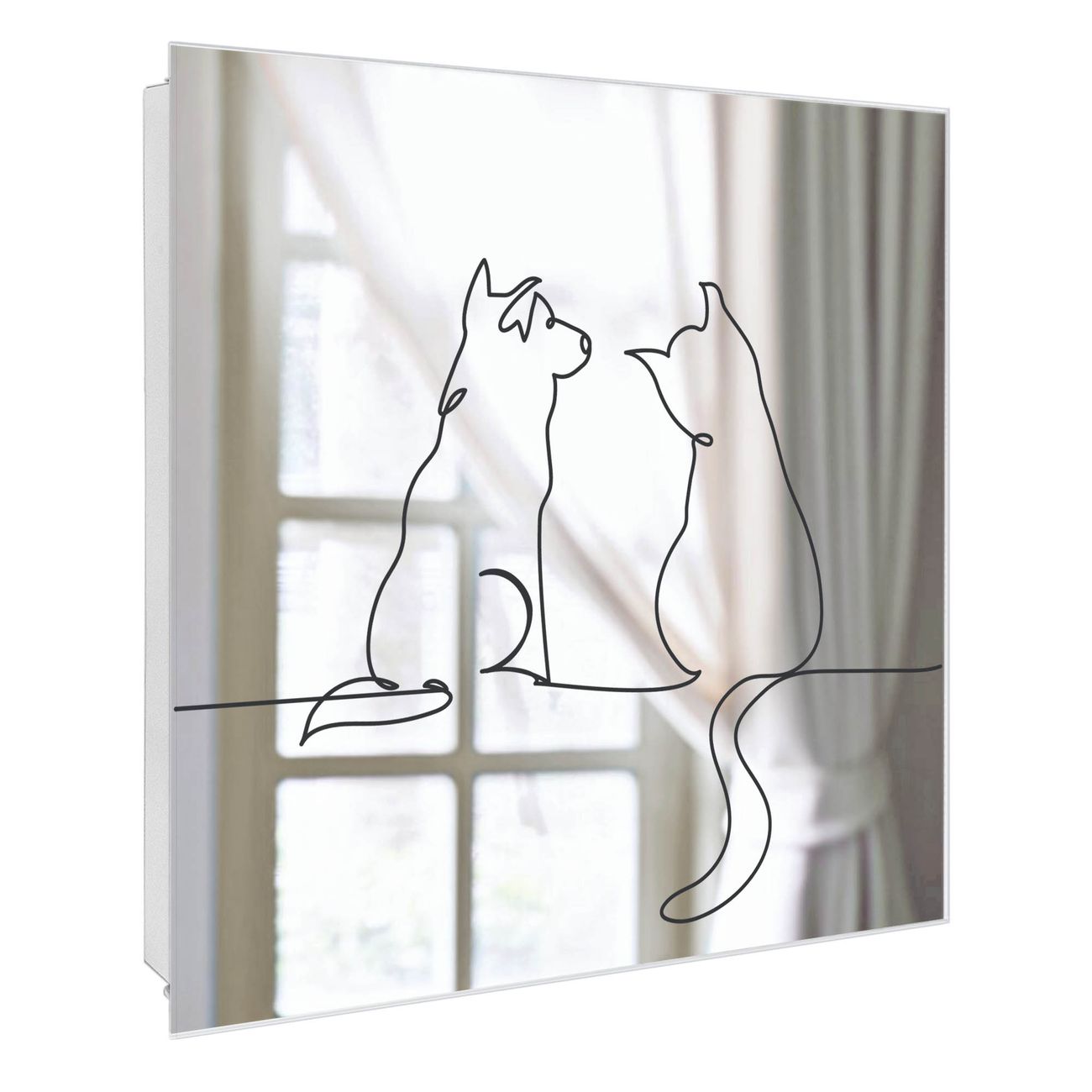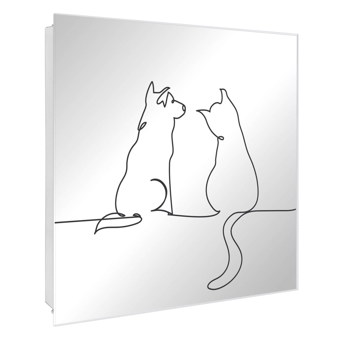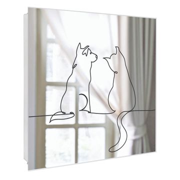 Spiegel Schlüsselkasten - Design Schlüsselbox Motiv Katzen-Hunde-Freundschaft Lineart