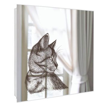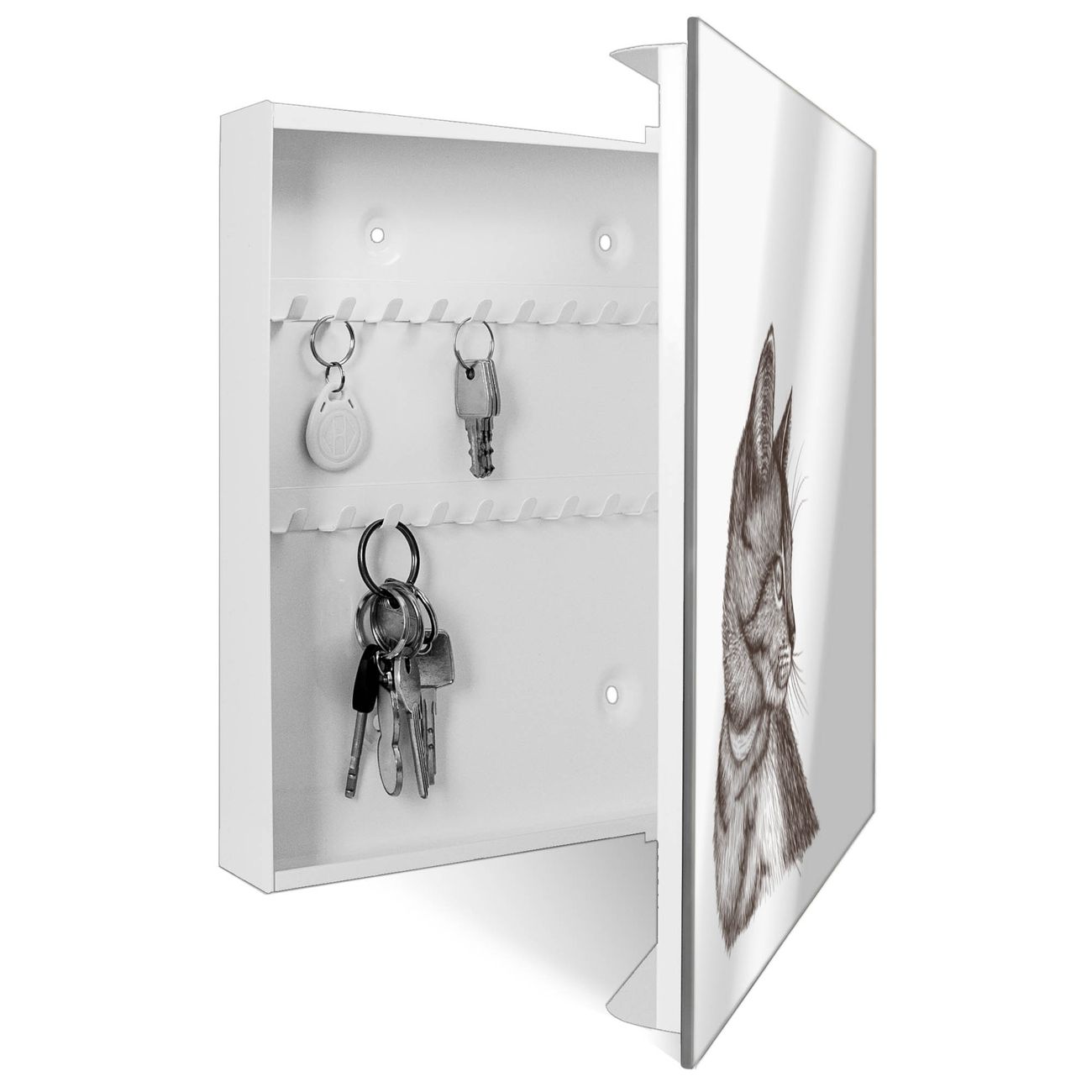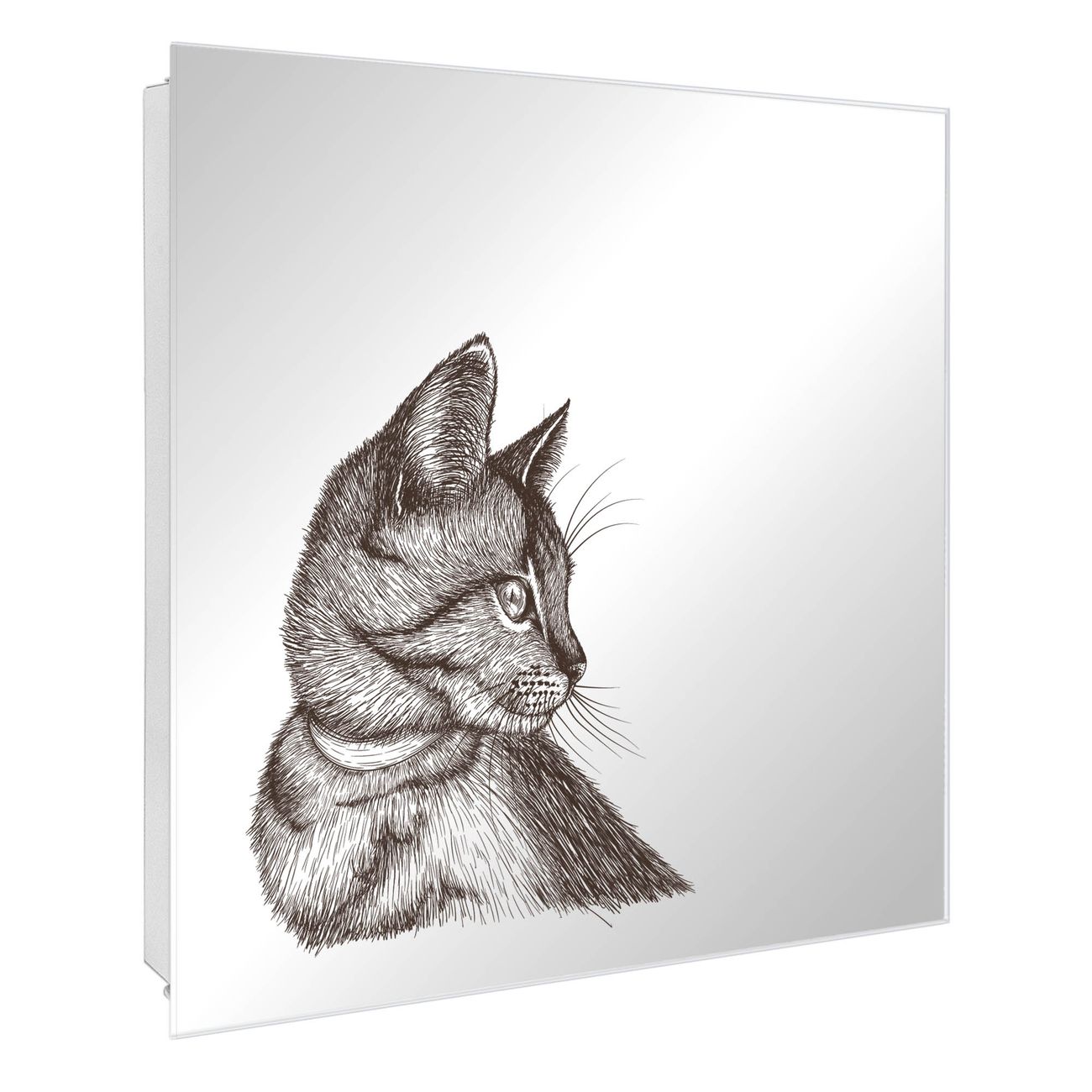 Spiegel Schlüsselkasten - Design Schlüsselbox Motiv Katzenillustration