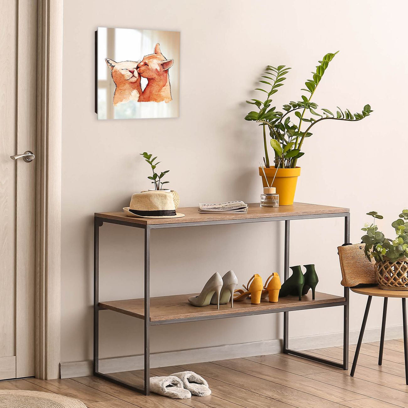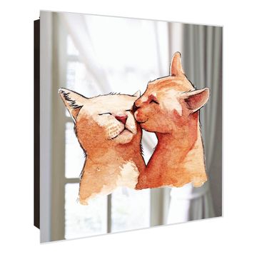 Spiegel Schlüsselkasten - Design Schlüsselbox Motiv Katzenkuss