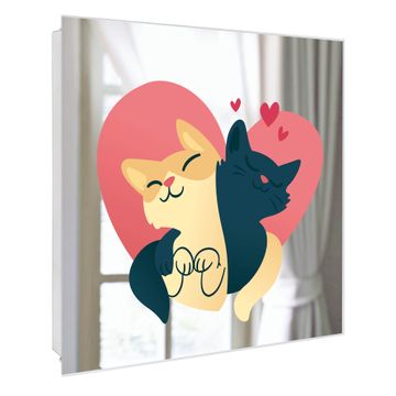 Spiegel Schlüsselkasten - Design Schlüsselbox Motiv Katzenliebe