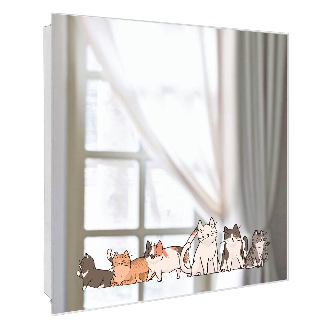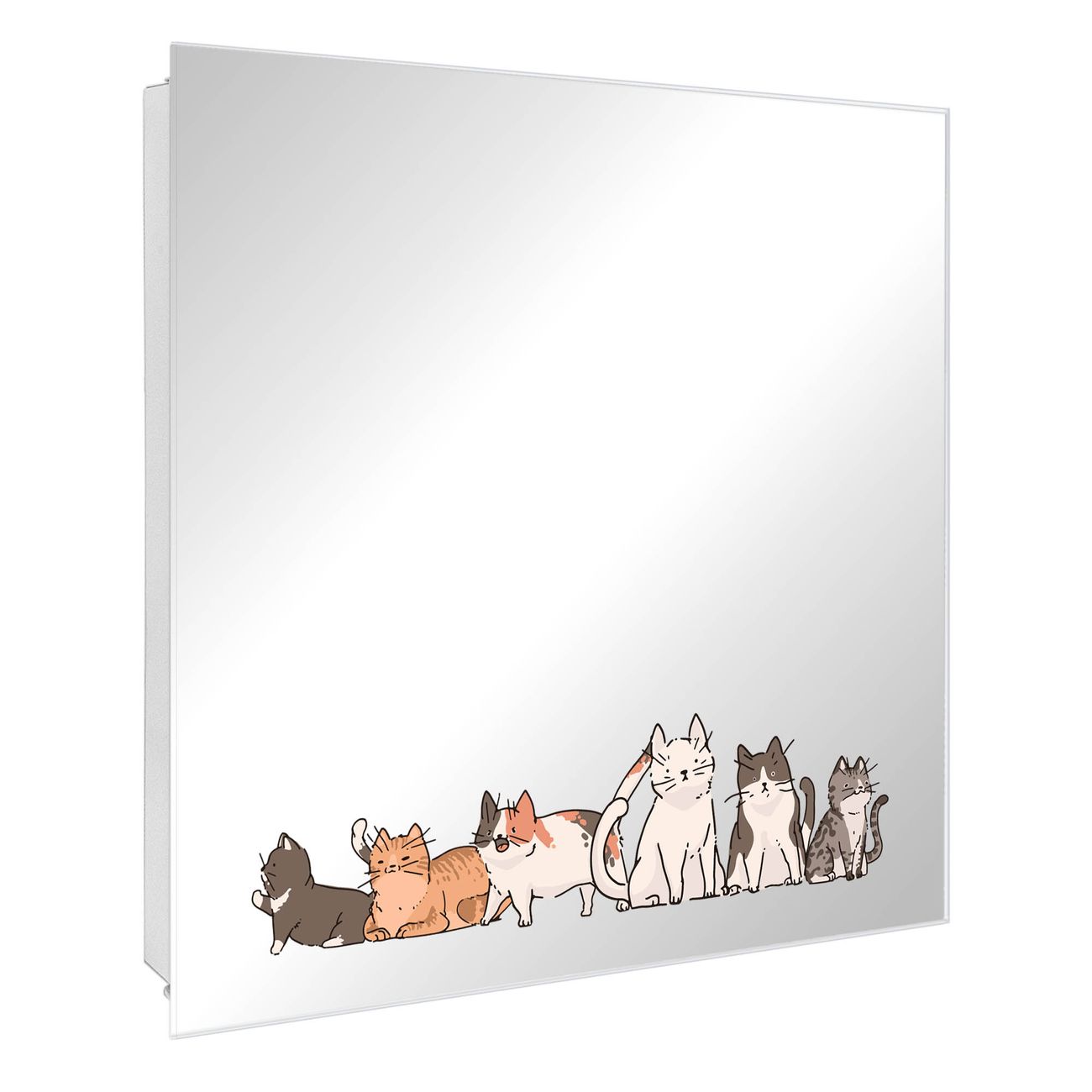Spiegel Schlüsselkasten - Design Schlüsselbox Motiv Katzenparade 2