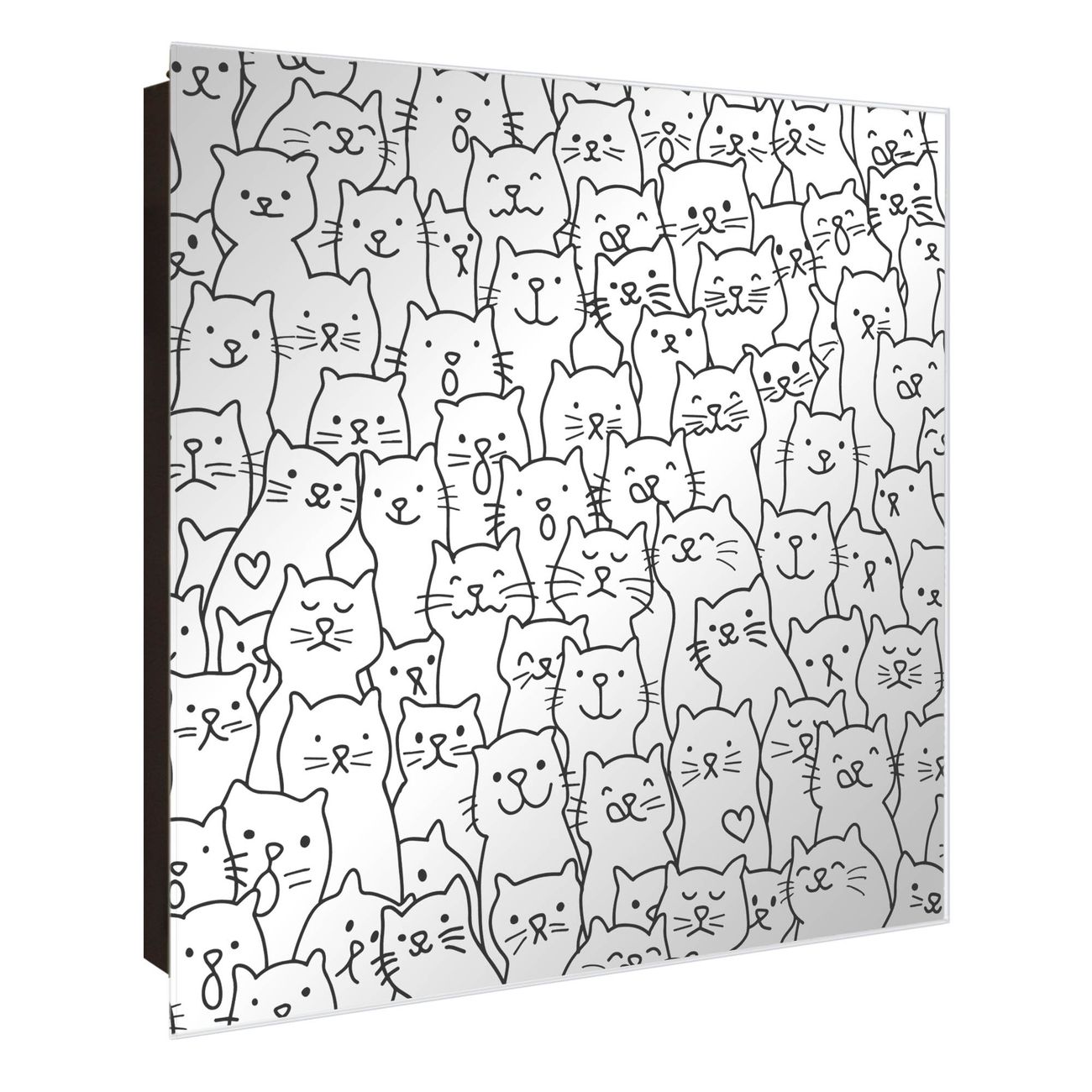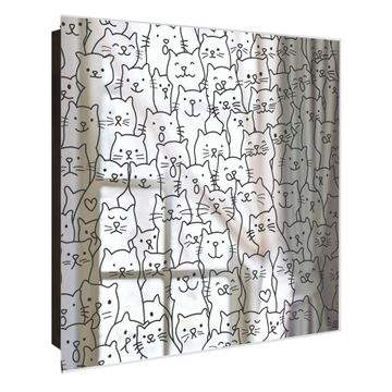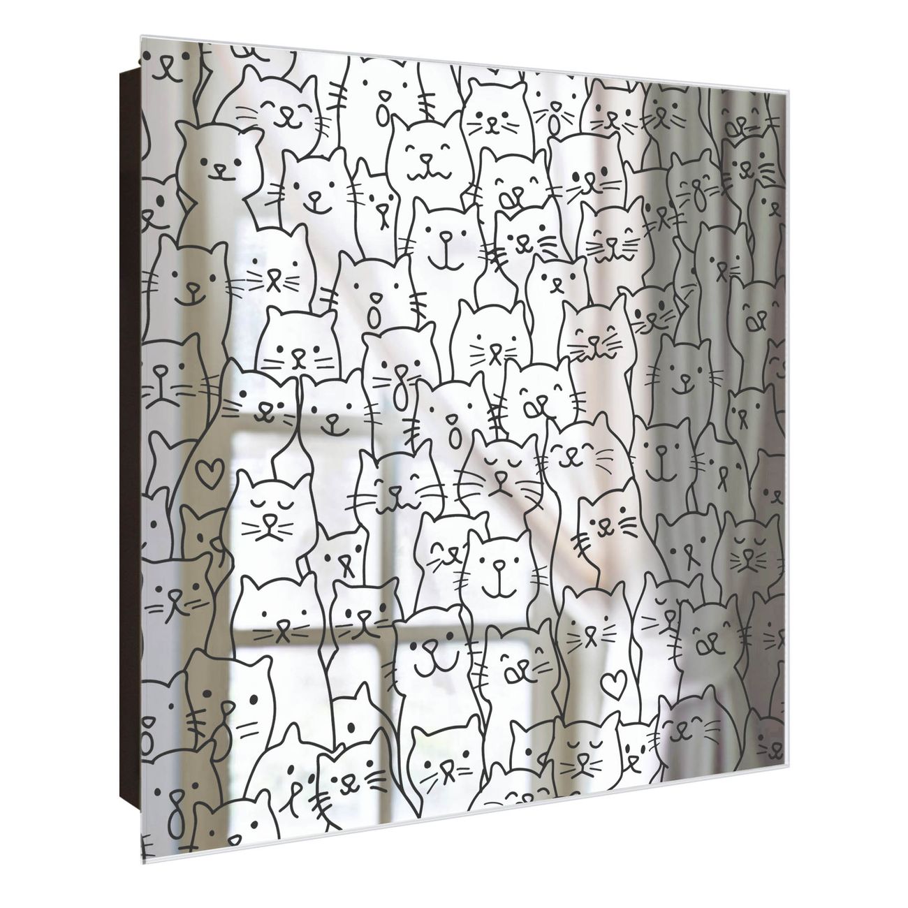 Spiegel Schlüsselkasten - Design Schlüsselbox Motiv Lustiges Katzenmuster