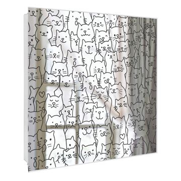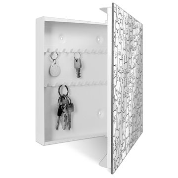 Bringe Ordnung und Stil in deinen Eingangsbereich mit dem banjado Schlüsselkasten mit Spiegel. Die elegante Spiegelfront kombiniert Funktionalität mit modernem Design und macht die Schlüsselaufbewahrung zu einem dekorativen Highlight. ✅ Spiegel Schlüsselaufbewahrung mit Motiv Motiv Katzenparade Der Design-Schlüsselkasten Motiv Motiv Katzenparade bietet Platz für bis zu 50 Schlüssel, die auf 5 stabilen Reihen mit je 10 Haken übersichtlich verstaut werden. Mit seinen kompakten Maßen von 30 x 30 x 5 cm passt die Schlüsselbox perfekt auch in kleinere Räume. Der weiß lackierte Stahlkorpus mit rechts angeschlagenem Türscharnier harmoniert mit der Spiegelfront und fügt sich nahtlos in jedes Wohnambiente ein. Ob als Schlüsselorganizer für Zuhause oder als praktische Lösung für Büros, Praxen und Gewerbe, der banjado Schlüsselkasten sorgt für Ordnung und Übersicht. Die Spiegelfront verleiht dem Eingangsbereich zusätzliche Funktionalität und lässt Räume optisch größer wirken. Die Schlüsselbox Motiv Motiv Katzenparade zur Wandmontage wird inklusive Befestigungsmaterial geliefert und ist schnell angebracht. So hast du deine Schlüssel jederzeit griffbereit und zugleich stilvoll verstaut. Mit diesem banjado Schlüsselkasten Motiv Motiv Katzenparade kombinierst du praktische Aufbewahrung mit stilvollem Wohndesign. Ob privat oder geschäftlich, die Schlüsselbox sorgt für mehr Ordnung, Übersicht und ein wohnliches Ambiente.Vorteile im Überblick