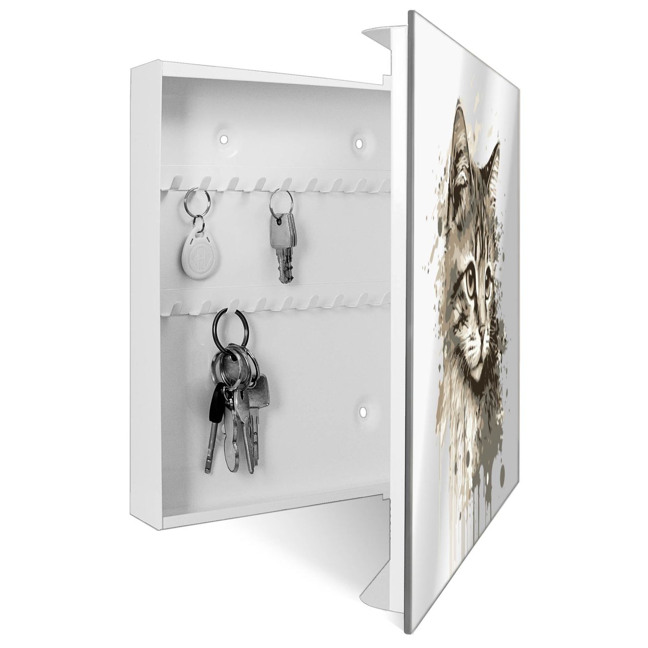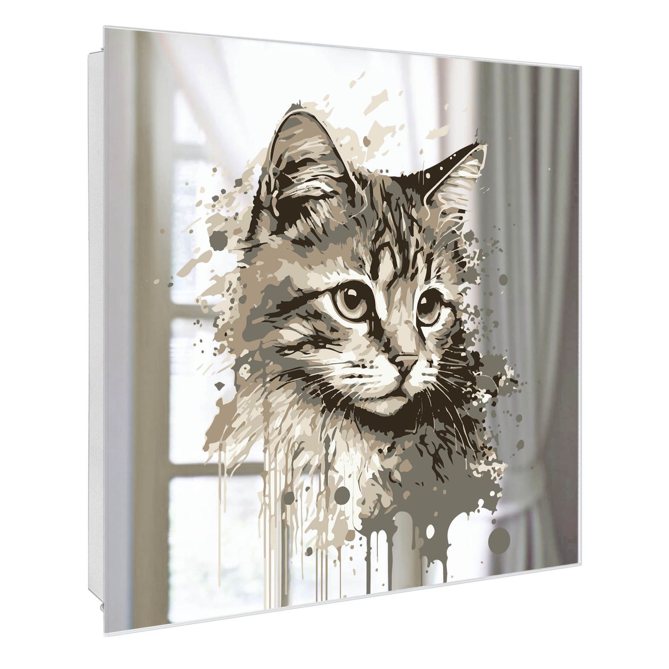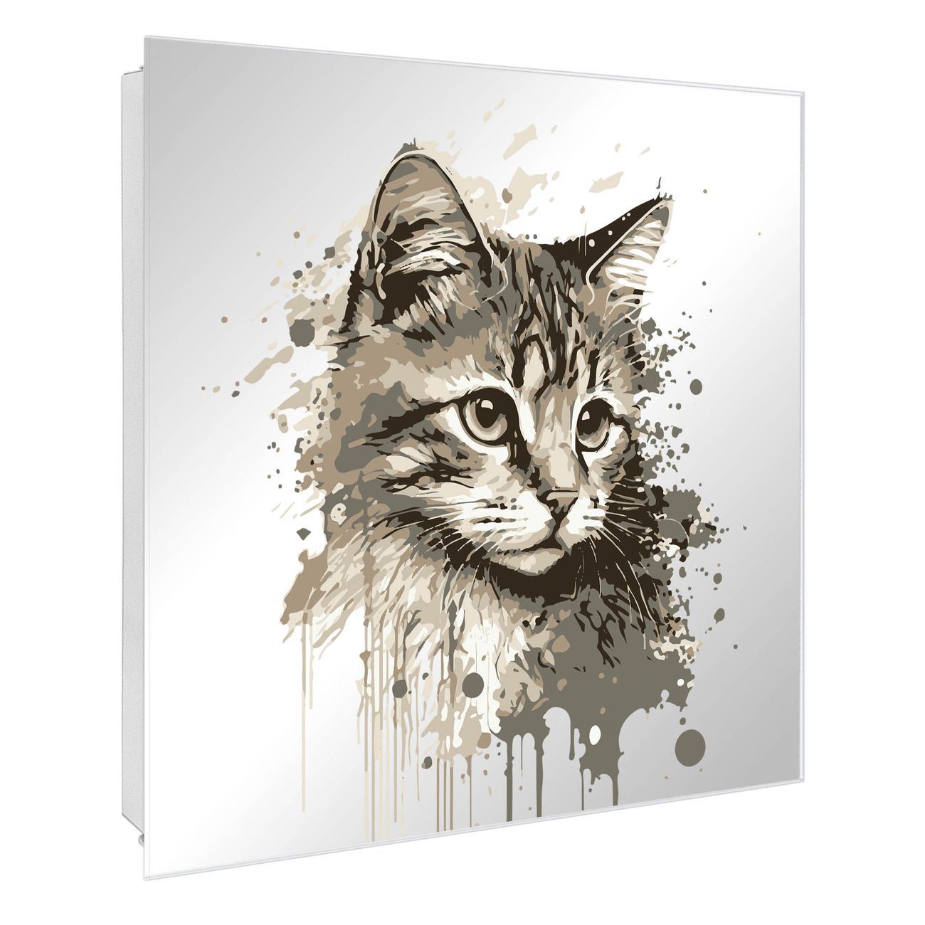 Spiegel Schlüsselkasten - Design Schlüsselbox Motiv Katzenportrait in Aquarell 2