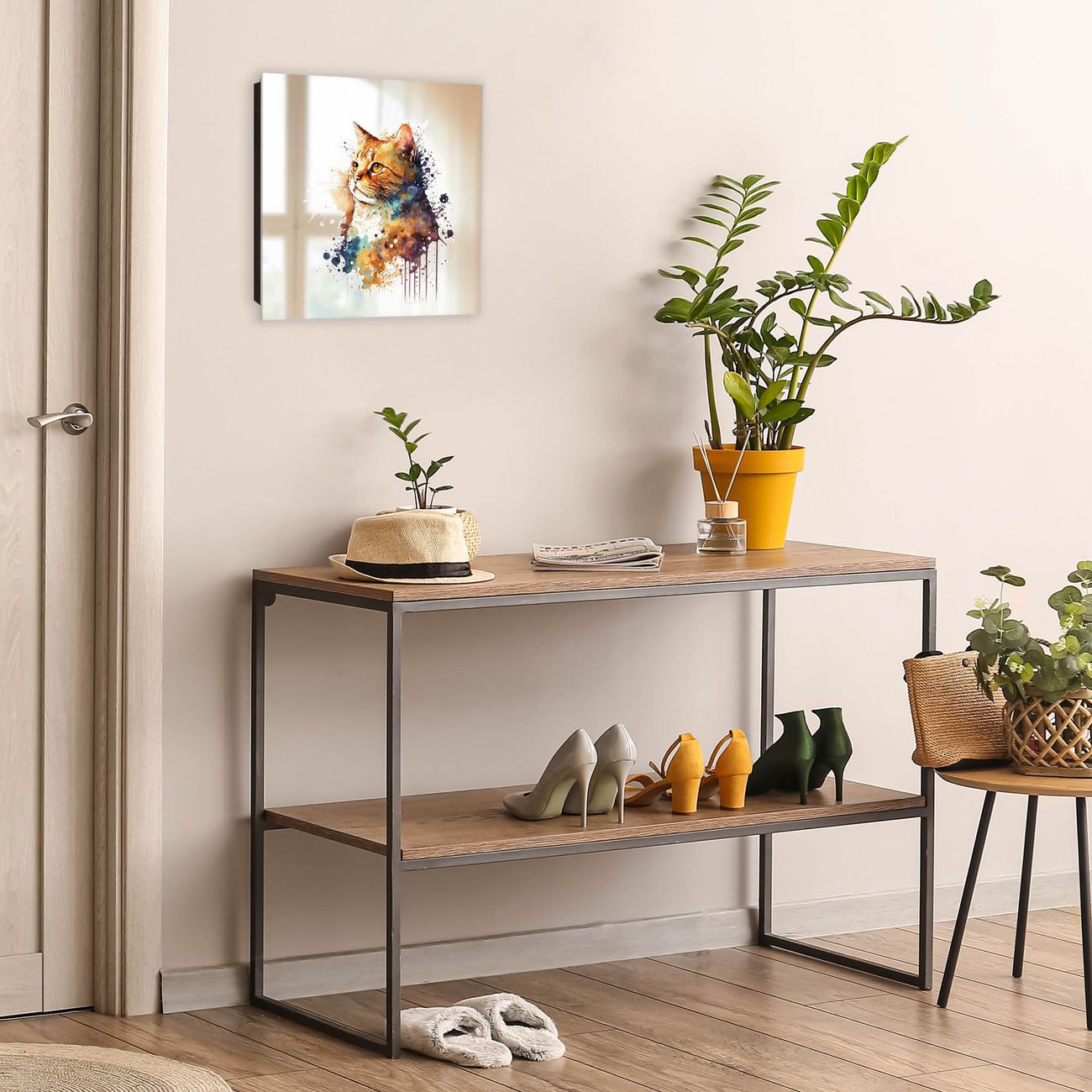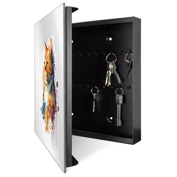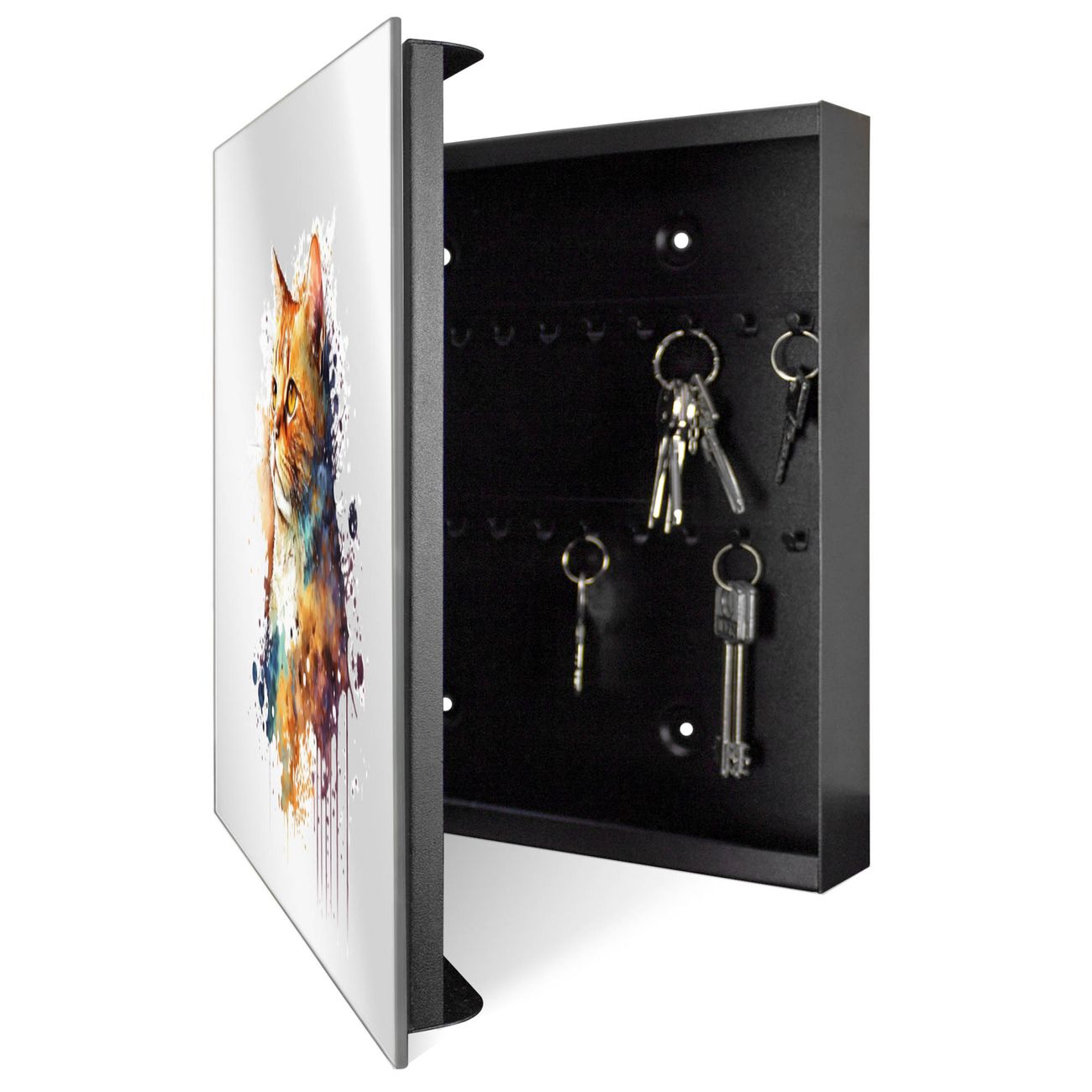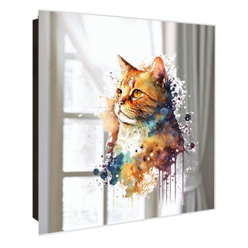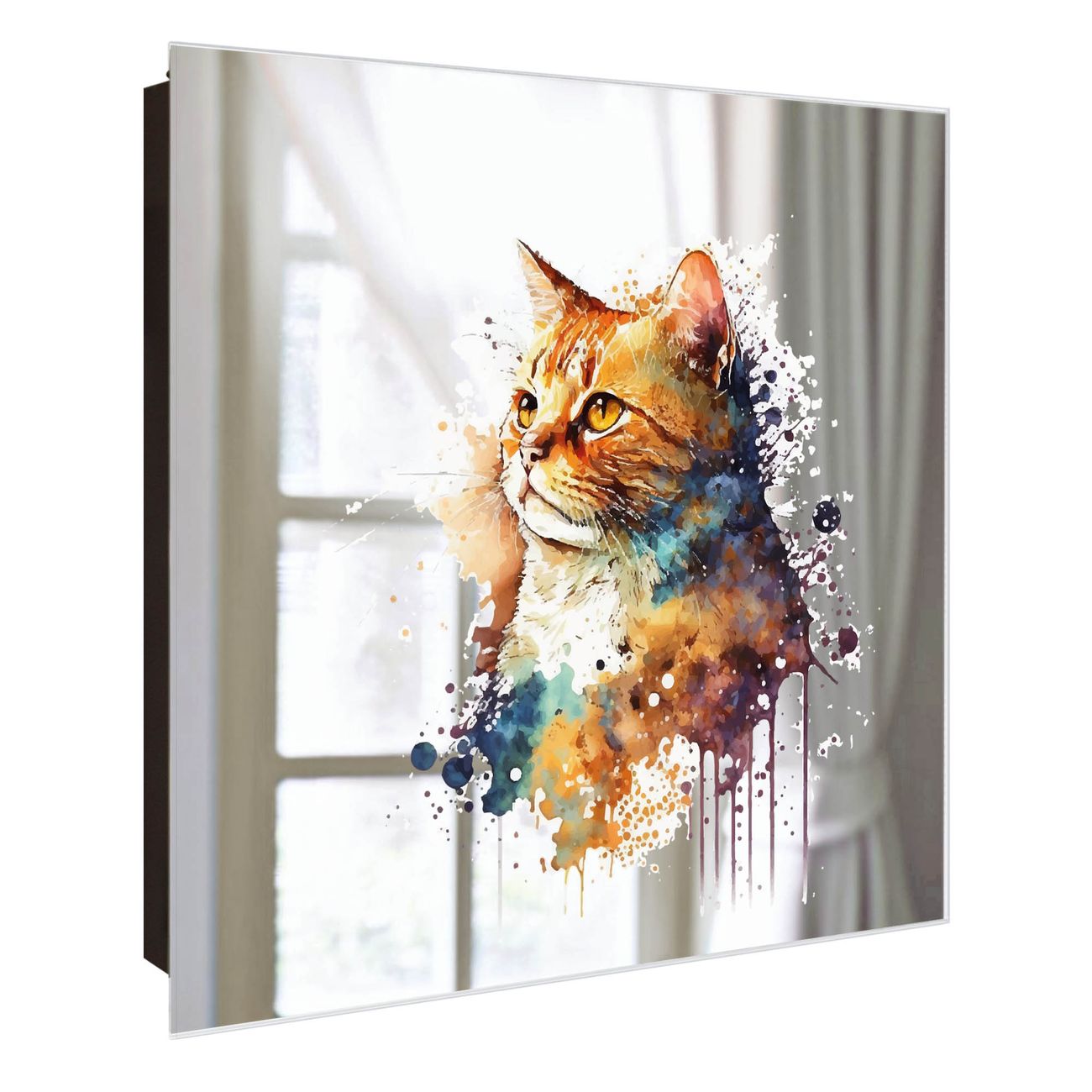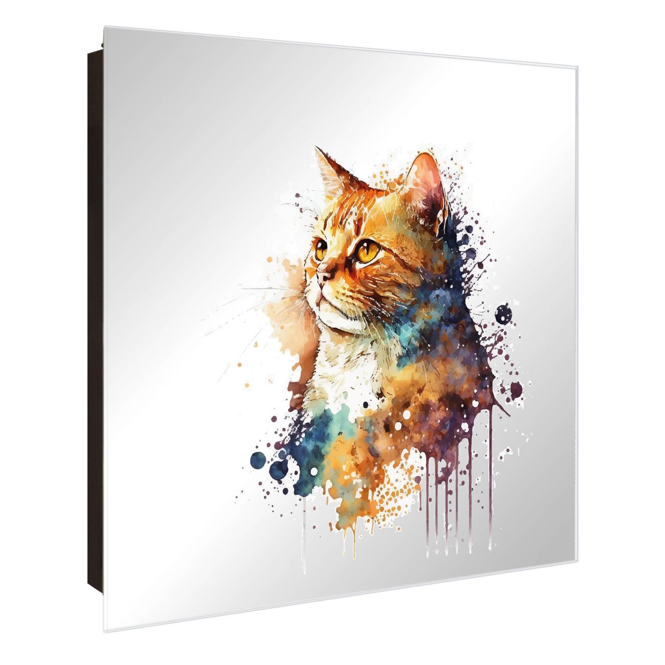 Spiegel Schlüsselkasten - Design Schlüsselbox Motiv Katzenportrait in Aquarell