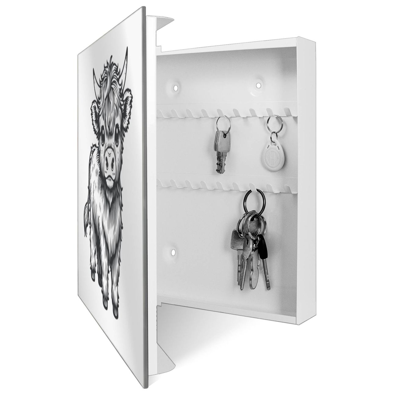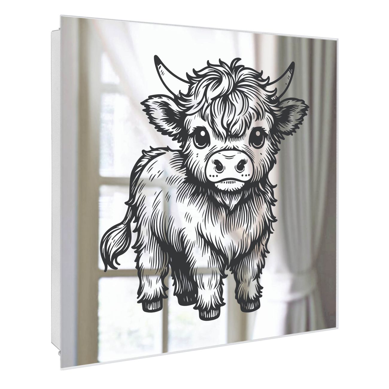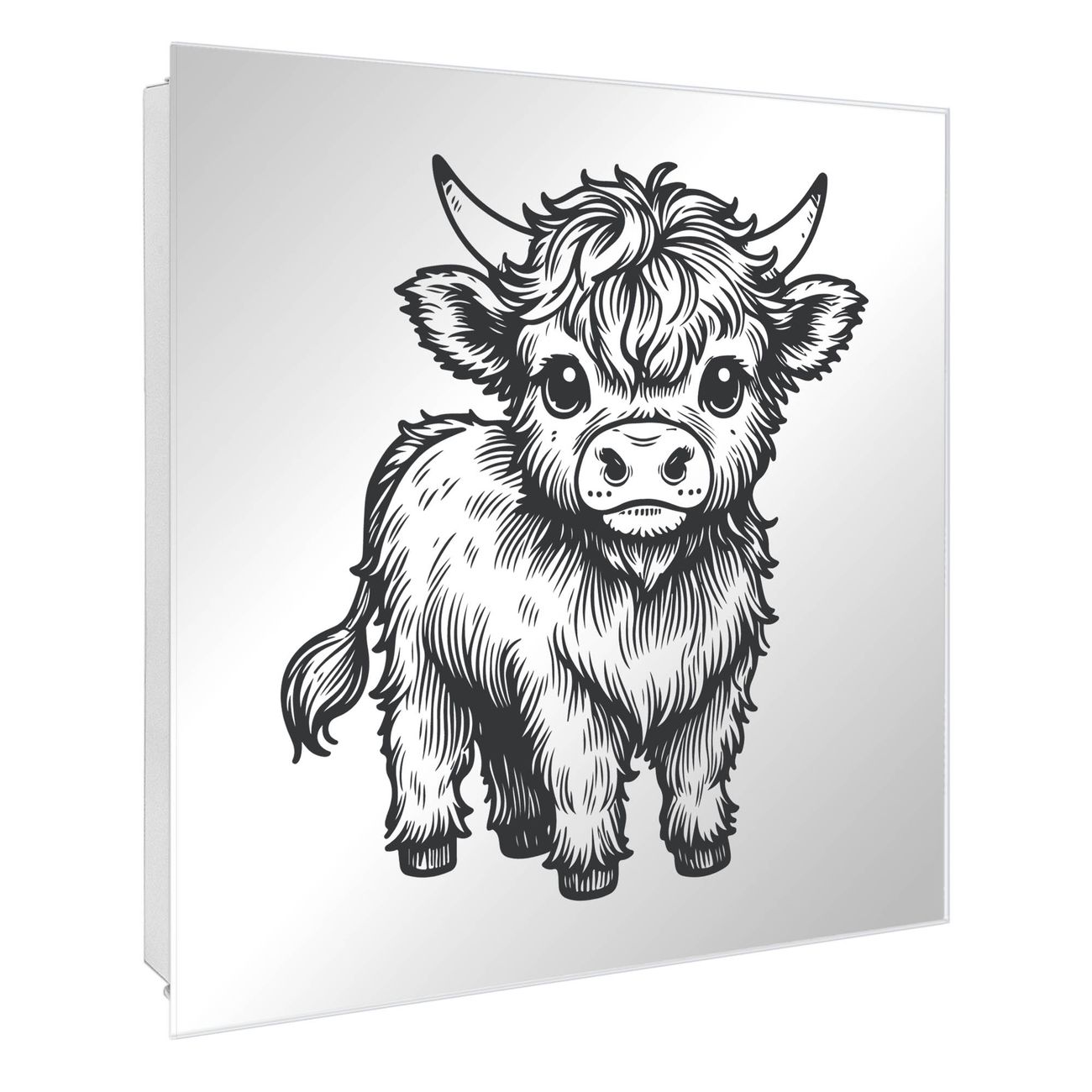 Spiegel Schlüsselkasten - Design Schlüsselbox Motiv Kleines Hochlandrind