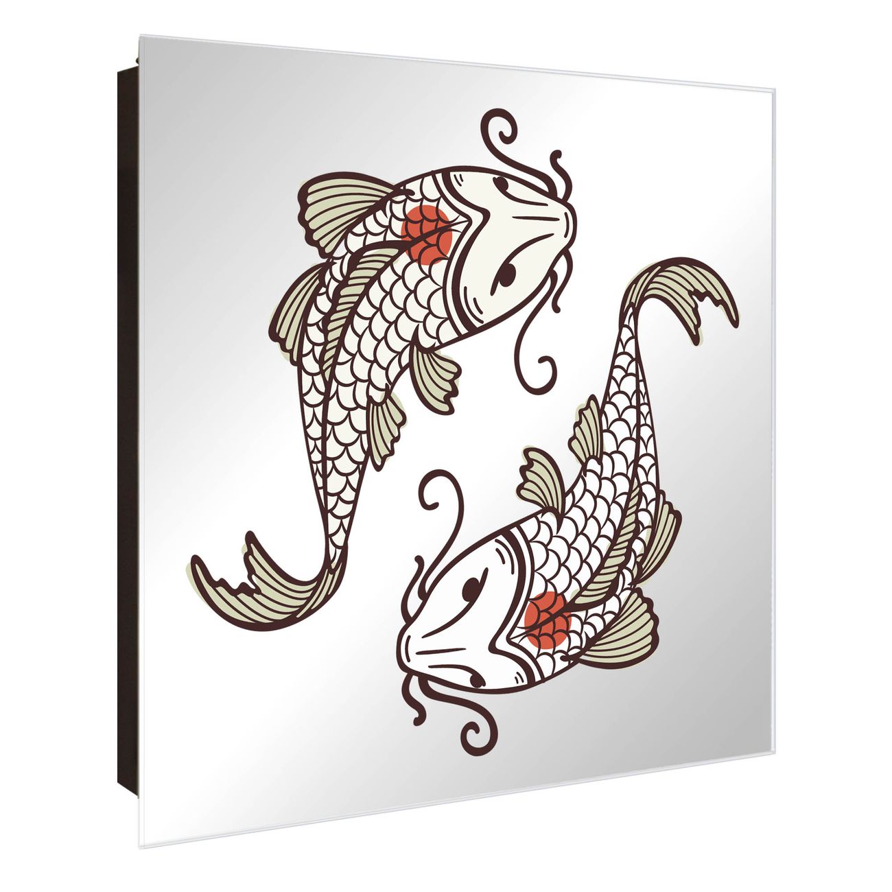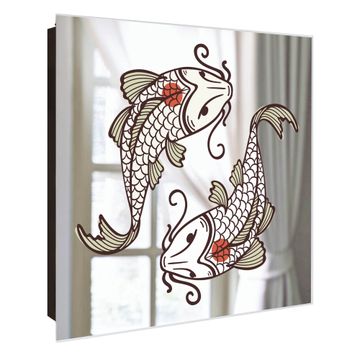 Schlüsselkasten mit Spiegelfront - Design Schlüsselbox Motiv Koi Paar