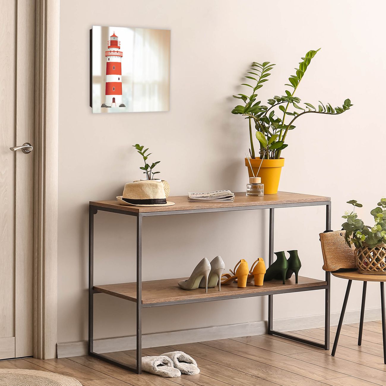 Bringe Ordnung und Stil in deinen Eingangsbereich mit dem banjado Schlüsselkasten mit Spiegel. Die elegante Spiegelfront kombiniert Funktionalität mit modernem Design und macht die Schlüsselaufbewahrung zu einem dekorativen Highlight. ✅ Spiegel Schlüsselaufbewahrung mit Motiv Motiv Küstenwächter Der Design-Schlüsselkasten Motiv Motiv Küstenwächter bietet Platz für bis zu 50 Schlüssel, die auf 5 stabilen Reihen mit je 10 Haken übersichtlich verstaut werden. Mit seinen kompakten Maßen von 30 x 30 x 5 cm passt die Schlüsselbox perfekt auch in kleinere Räume. Der schwarz lackierte Stahlkorpus mit rechts angeschlagenem Türscharnier harmoniert mit der Spiegelfront und fügt sich nahtlos in jedes Wohnambiente ein. Ob als Schlüsselorganizer für Zuhause oder als praktische Lösung für Büros, Praxen und Gewerbe, der banjado Schlüsselkasten sorgt für Ordnung und Übersicht. Die Spiegelfront verleiht dem Eingangsbereich zusätzliche Funktionalität und lässt Räume optisch größer wirken. Die Schlüsselbox Motiv Motiv Küstenwächter zur Wandmontage wird inklusive Befestigungsmaterial geliefert und ist schnell angebracht. So hast du deine Schlüssel jederzeit griffbereit und zugleich stilvoll verstaut. Mit diesem banjado Schlüsselkasten Motiv Motiv Küstenwächter kombinierst du praktische Aufbewahrung mit stilvollem Wohndesign. Ob privat oder geschäftlich, die Schlüsselbox sorgt für mehr Ordnung, Übersicht und ein wohnliches Ambiente.Vorteile im Überblick