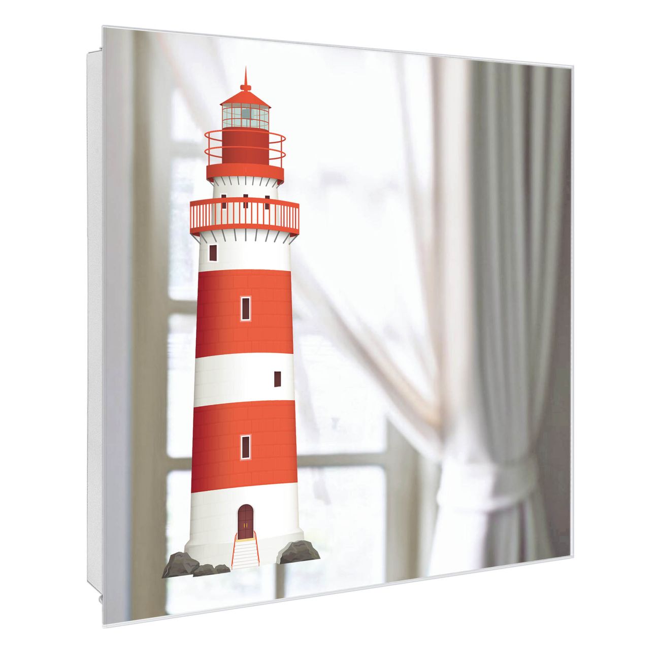 Bringe Ordnung und Stil in deinen Eingangsbereich mit dem banjado Schlüsselkasten mit Spiegel. Die elegante Spiegelfront kombiniert Funktionalität mit modernem Design und macht die Schlüsselaufbewahrung zu einem dekorativen Highlight. ✅ Spiegel Schlüsselaufbewahrung mit Motiv Motiv Küstenwächter Der Design-Schlüsselkasten Motiv Motiv Küstenwächter bietet Platz für bis zu 50 Schlüssel, die auf 5 stabilen Reihen mit je 10 Haken übersichtlich verstaut werden. Mit seinen kompakten Maßen von 30 x 30 x 5 cm passt die Schlüsselbox perfekt auch in kleinere Räume. Der weiß lackierte Stahlkorpus mit rechts angeschlagenem Türscharnier harmoniert mit der Spiegelfront und fügt sich nahtlos in jedes Wohnambiente ein. Ob als Schlüsselorganizer für Zuhause oder als praktische Lösung für Büros, Praxen und Gewerbe, der banjado Schlüsselkasten sorgt für Ordnung und Übersicht. Die Spiegelfront verleiht dem Eingangsbereich zusätzliche Funktionalität und lässt Räume optisch größer wirken. Die Schlüsselbox Motiv Motiv Küstenwächter zur Wandmontage wird inklusive Befestigungsmaterial geliefert und ist schnell angebracht. So hast du deine Schlüssel jederzeit griffbereit und zugleich stilvoll verstaut. Mit diesem banjado Schlüsselkasten Motiv Motiv Küstenwächter kombinierst du praktische Aufbewahrung mit stilvollem Wohndesign. Ob privat oder geschäftlich, die Schlüsselbox sorgt für mehr Ordnung, Übersicht und ein wohnliches Ambiente.Vorteile im Überblick