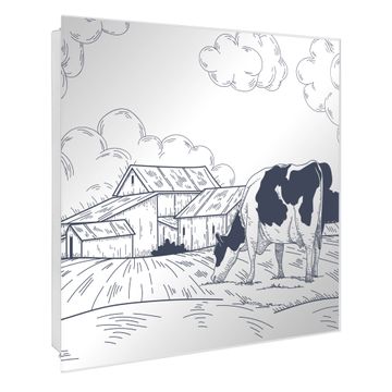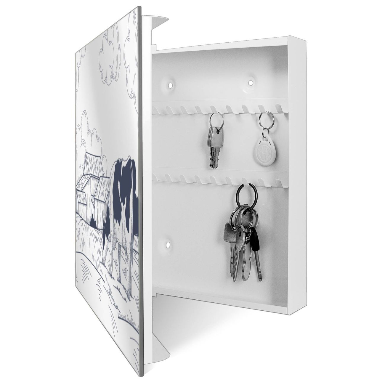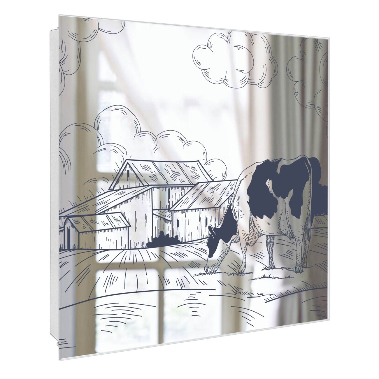 Spiegel Schlüsselkasten - Design Schlüsselbox Motiv Ländliche Idylle mit Kuh