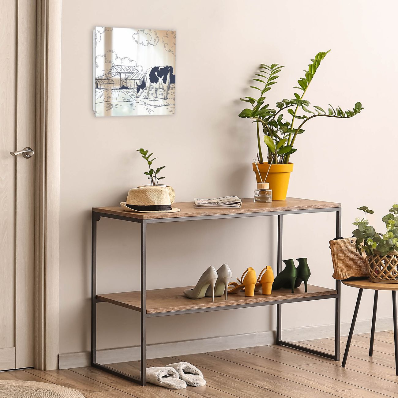 Bringe Ordnung und Stil in deinen Eingangsbereich mit dem banjado Schlüsselkasten mit Spiegel. Die elegante Spiegelfront kombiniert Funktionalität mit modernem Design und macht die Schlüsselaufbewahrung zu einem dekorativen Highlight. ✅ Spiegel Schlüsselaufbewahrung mit Motiv Motiv Ländliche Idylle mit Kuh Der Design-Schlüsselkasten Motiv Motiv Ländliche Idylle mit Kuh bietet Platz für bis zu 50 Schlüssel, die auf 5 stabilen Reihen mit je 10 Haken übersichtlich verstaut werden. Mit seinen kompakten Maßen von 30 x 30 x 5 cm passt die Schlüsselbox perfekt auch in kleinere Räume. Der weiß lackierte Stahlkorpus mit rechts angeschlagenem Türscharnier harmoniert mit der Spiegelfront und fügt sich nahtlos in jedes Wohnambiente ein. Ob als Schlüsselorganizer für Zuhause oder als praktische Lösung für Büros, Praxen und Gewerbe, der banjado Schlüsselkasten sorgt für Ordnung und Übersicht. Die Spiegelfront verleiht dem Eingangsbereich zusätzliche Funktionalität und lässt Räume optisch größer wirken. Die Schlüsselbox Motiv Motiv Ländliche Idylle mit Kuh zur Wandmontage wird inklusive Befestigungsmaterial geliefert und ist schnell angebracht. So hast du deine Schlüssel jederzeit griffbereit und zugleich stilvoll verstaut. Mit diesem banjado Schlüsselkasten Motiv Motiv Ländliche Idylle mit Kuh kombinierst du praktische Aufbewahrung mit stilvollem Wohndesign. Ob privat oder geschäftlich, die Schlüsselbox sorgt für mehr Ordnung, Übersicht und ein wohnliches Ambiente.Vorteile im Überblick