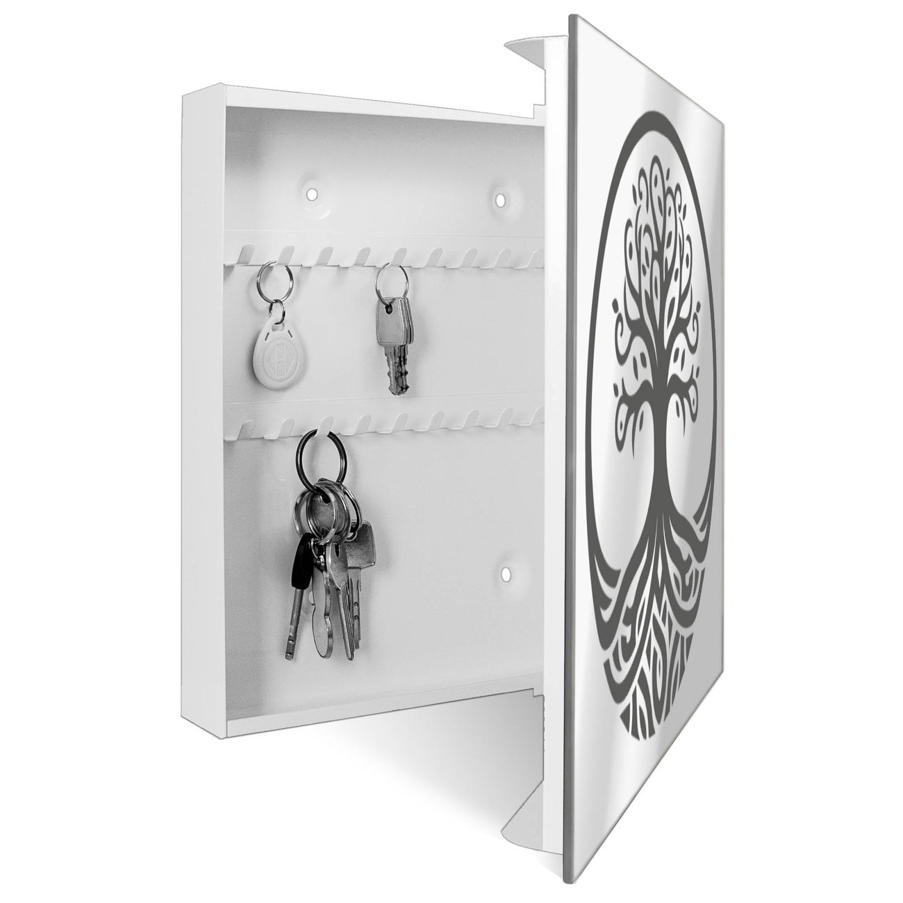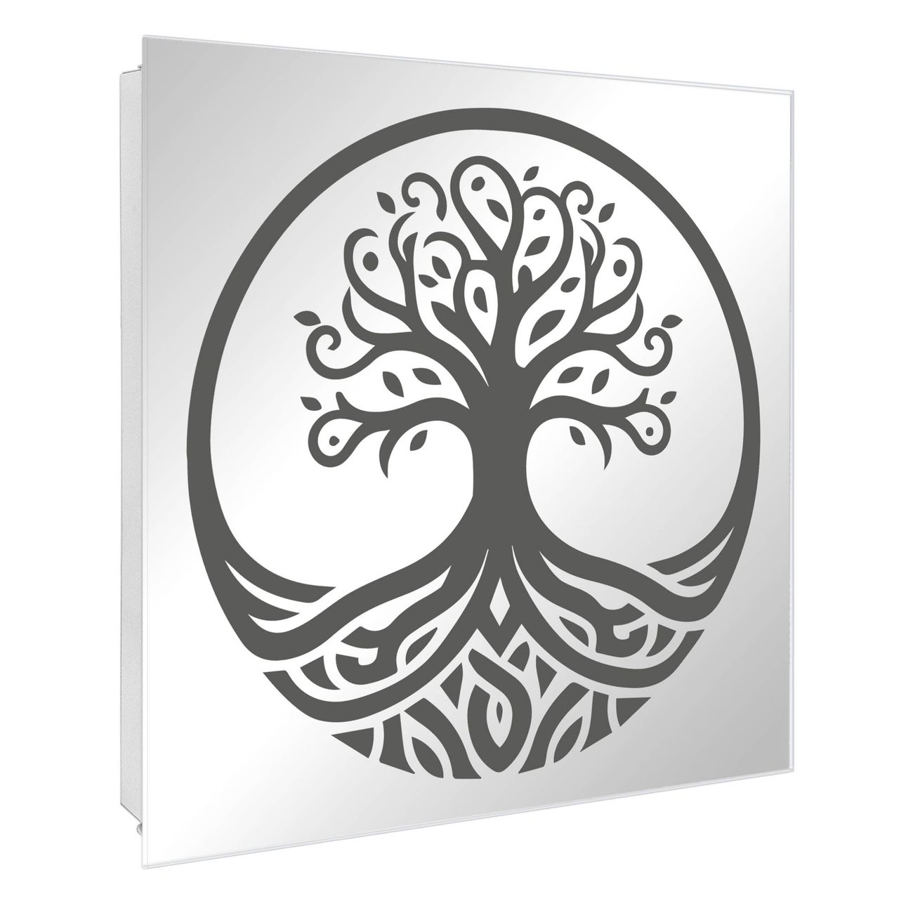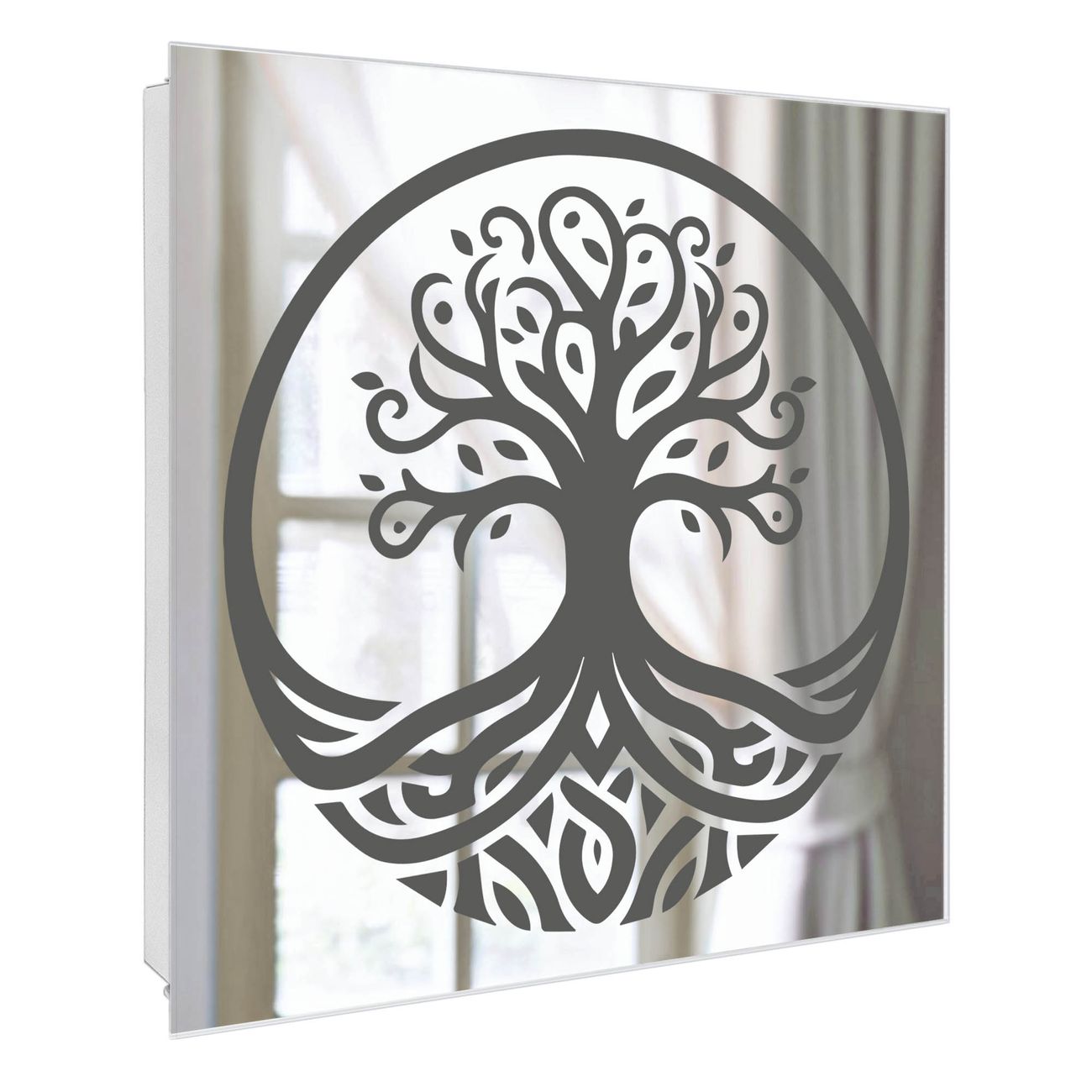Spiegel Schlüsselkasten - Design Schlüsselbox Motiv Lebensbaum Silhouette 2