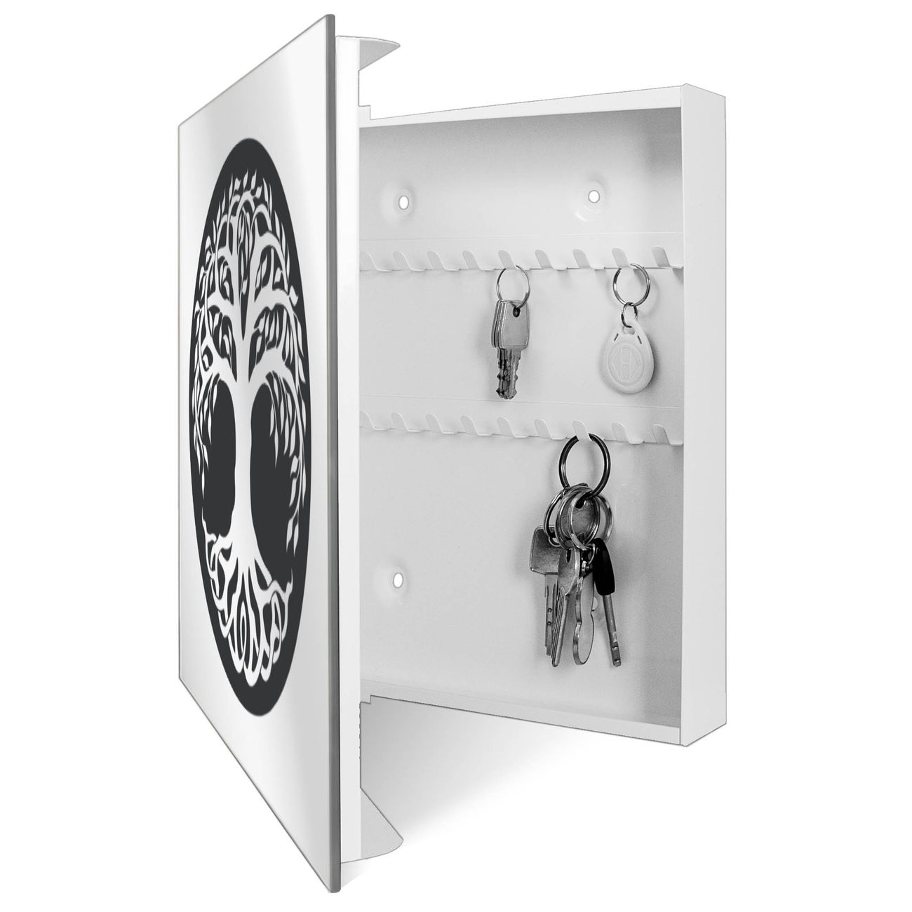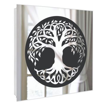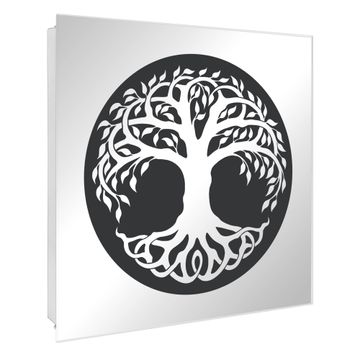 Spiegel Schlüsselkasten - Design Schlüsselbox Motiv Lebensbaum Silhouette