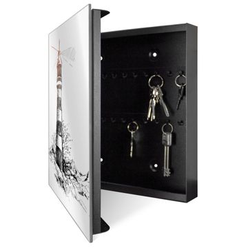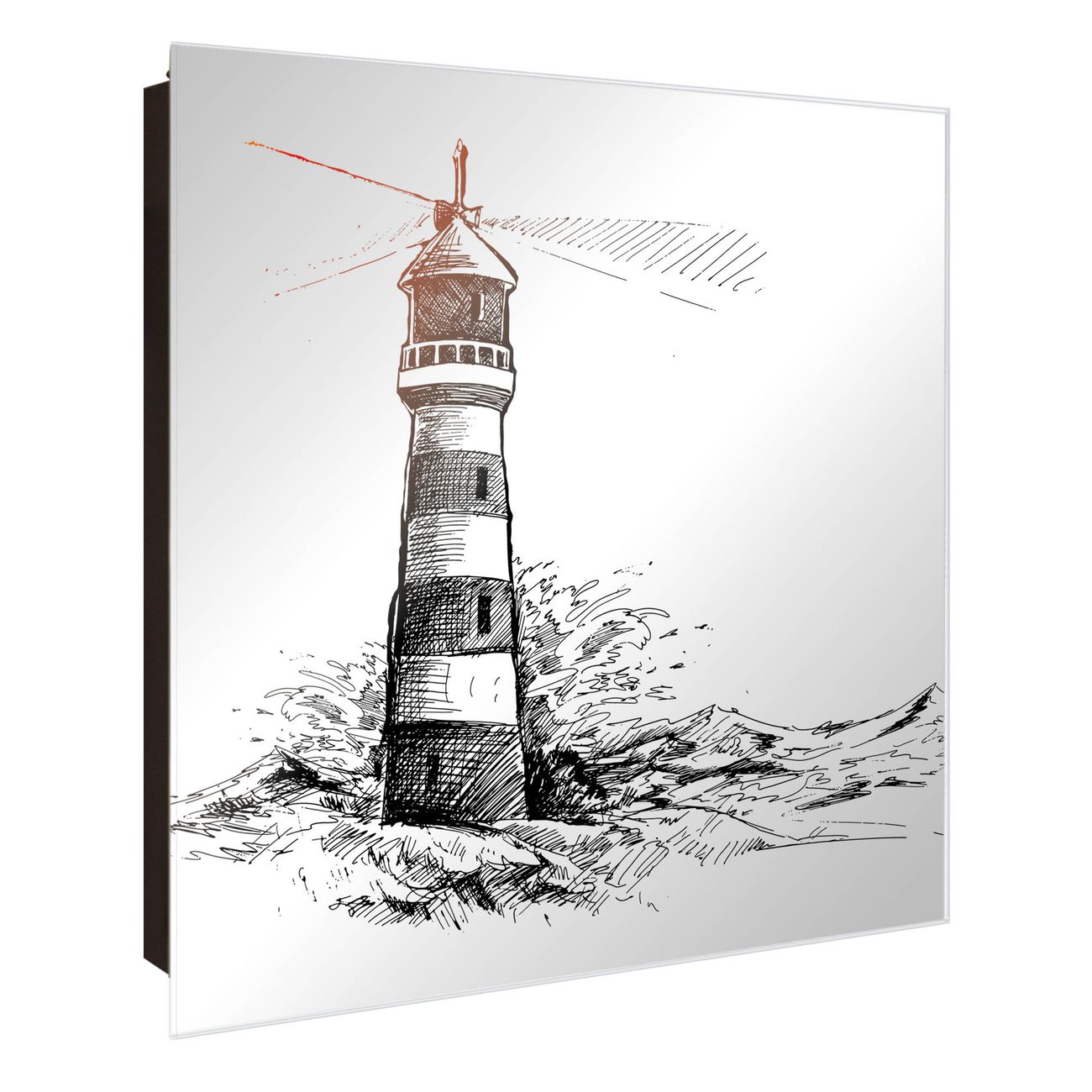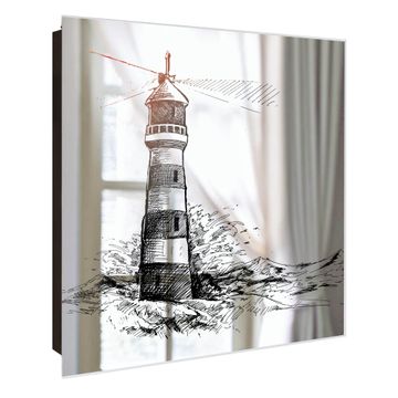Spiegel Schlüsselkasten - Design Schlüsselbox Motiv Leuchtturm in der Brandung