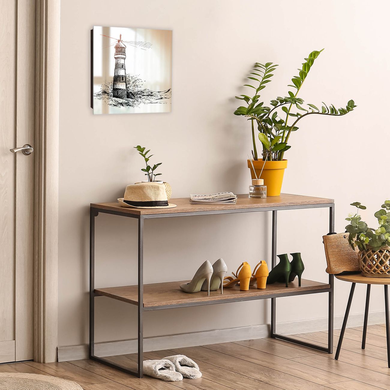 Bringe Ordnung und Stil in deinen Eingangsbereich mit dem banjado Schlüsselkasten mit Spiegel. Die elegante Spiegelfront kombiniert Funktionalität mit modernem Design und macht die Schlüsselaufbewahrung zu einem dekorativen Highlight. ✅ Spiegel Schlüsselaufbewahrung mit Motiv Motiv Leuchtturm in der Brandung Der Design-Schlüsselkasten Motiv Motiv Leuchtturm in der Brandung bietet Platz für bis zu 50 Schlüssel, die auf 5 stabilen Reihen mit je 10 Haken übersichtlich verstaut werden. Mit seinen kompakten Maßen von 30 x 30 x 5 cm passt die Schlüsselbox perfekt auch in kleinere Räume. Der schwarz lackierte Stahlkorpus mit rechts angeschlagenem Türscharnier harmoniert mit der Spiegelfront und fügt sich nahtlos in jedes Wohnambiente ein. Ob als Schlüsselorganizer für Zuhause oder als praktische Lösung für Büros, Praxen und Gewerbe, der banjado Schlüsselkasten sorgt für Ordnung und Übersicht. Die Spiegelfront verleiht dem Eingangsbereich zusätzliche Funktionalität und lässt Räume optisch größer wirken. Die Schlüsselbox Motiv Motiv Leuchtturm in der Brandung zur Wandmontage wird inklusive Befestigungsmaterial geliefert und ist schnell angebracht. So hast du deine Schlüssel jederzeit griffbereit und zugleich stilvoll verstaut. Mit diesem banjado Schlüsselkasten Motiv Motiv Leuchtturm in der Brandung kombinierst du praktische Aufbewahrung mit stilvollem Wohndesign. Ob privat oder geschäftlich, die Schlüsselbox sorgt für mehr Ordnung, Übersicht und ein wohnliches Ambiente.Vorteile im Überblick