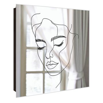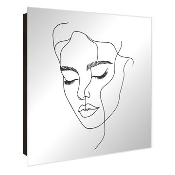 Spiegel Schlüsselkasten - Design Schlüsselbox Motiv Linienkunst-Portrait